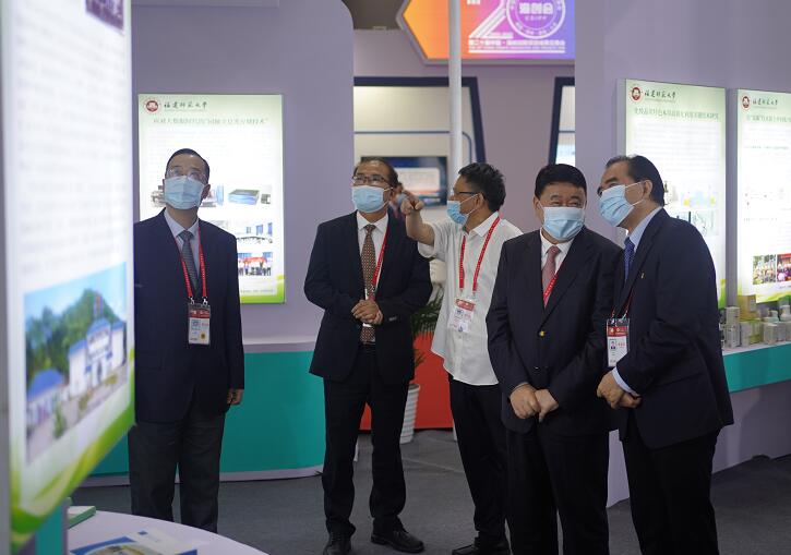 6月18日,第二十届中国·海峡创新项目成果交易会(简称海创会)在福州海峡国际会展中心开幕,省委常委、统战部部长王永礼,省人大常委会党组书记、副主任梁建勇,中国发明协会党委书记、常务副理事长兼秘书长余华荣莅临我校“双碳”展区指导,校长王长平、副校长陈庆华在现场介绍了相关情况。
