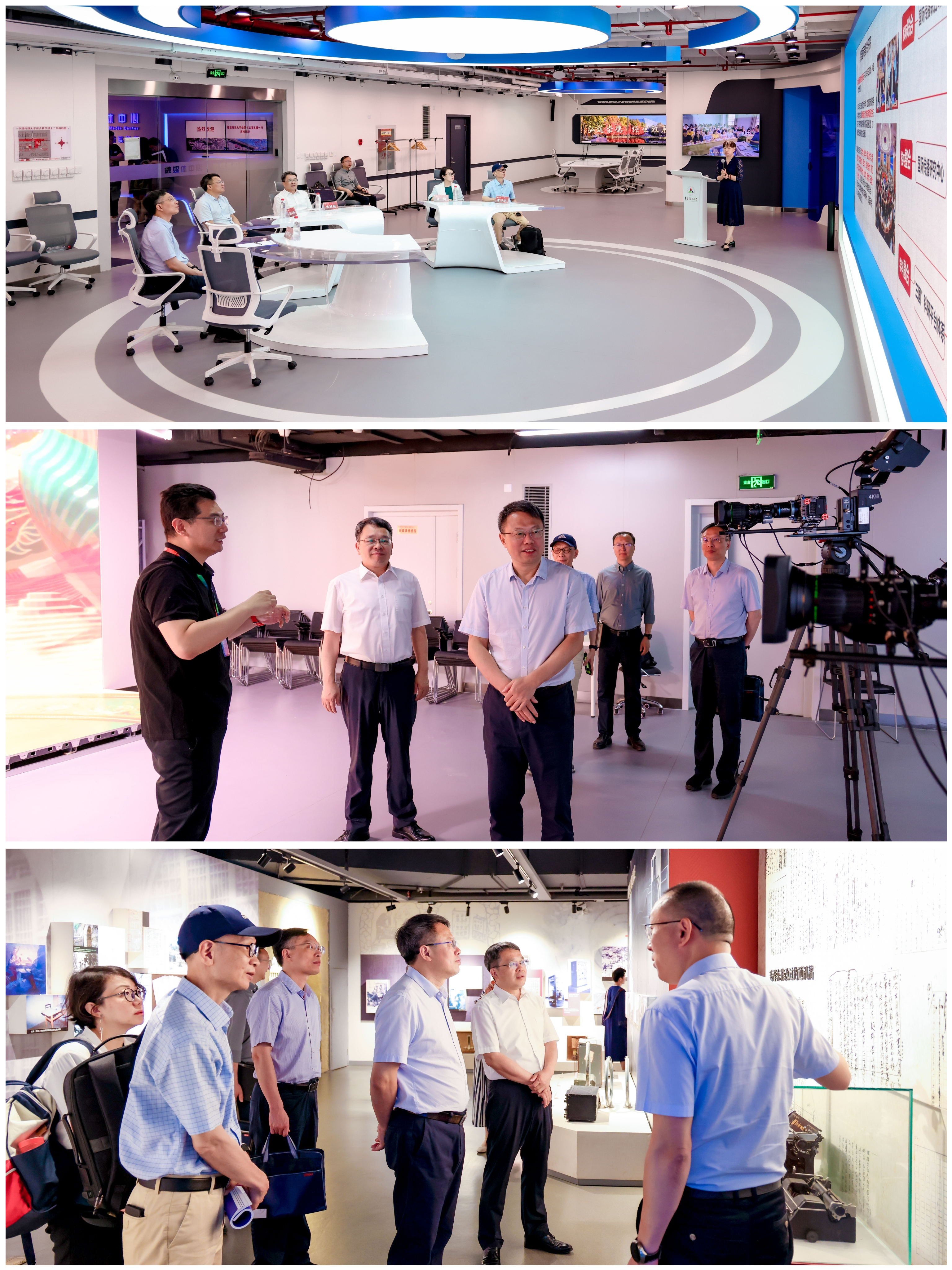 会前,在张树庭的陪同下,潘玉腾一行参观了中国传媒大学媒体融合与传播国家重点实验室、国家舆情实验室和中国传媒大学传媒博物馆。