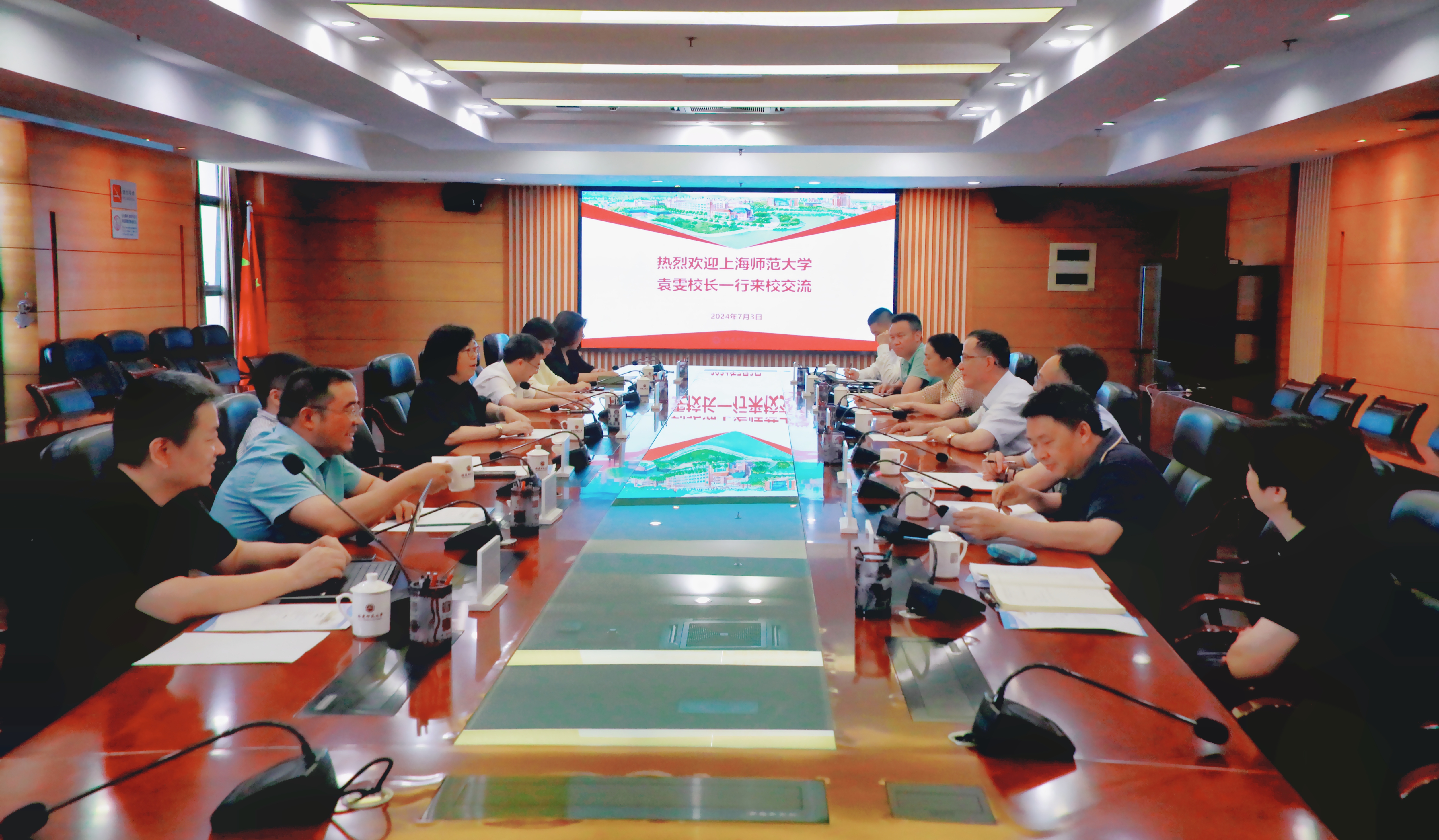 7月3日,上海师范大学校长袁雯、副校长李晔一行来校调研交流。校长王长平,党政办公室、组织部、教务处、发展规划处、人事处、研究生院等相关职能部门负责人参加了座谈会。座谈会上,双方介绍了各自星空捕鱼游戏官网和办学成果,围绕学科建设、人才培养、师资队伍建设以及教学评价改革、教师教育等方面进行了深入交流。双方一致表示,两校同属师范类院校,在发展道路上都面临共同的机遇和挑战,希望进一步发挥优势、拓宽合作交流领域,共同为教育强国建设作出新的贡献。会前,袁雯一行还参观了我校老照片馆。(党政办公室)