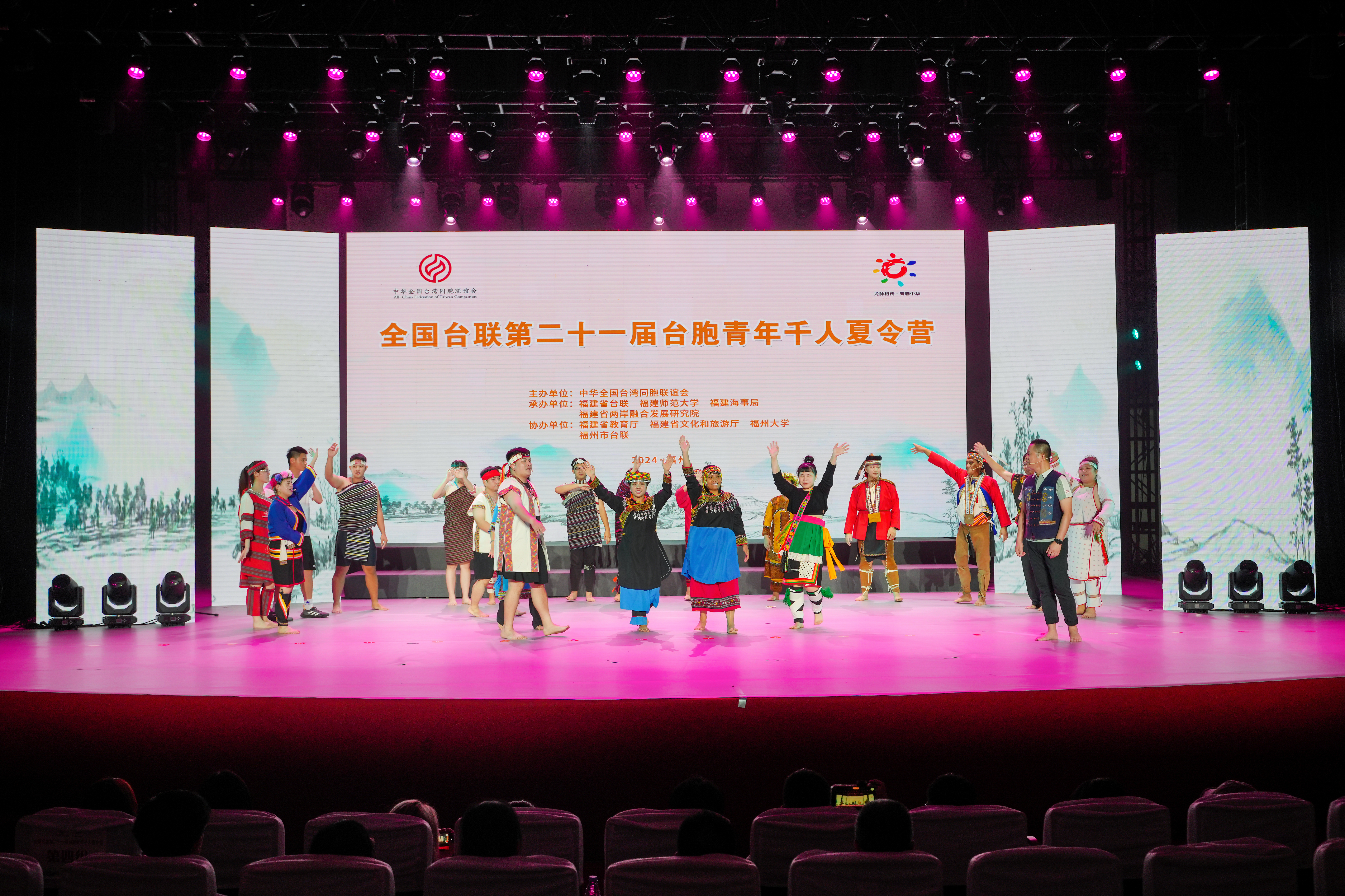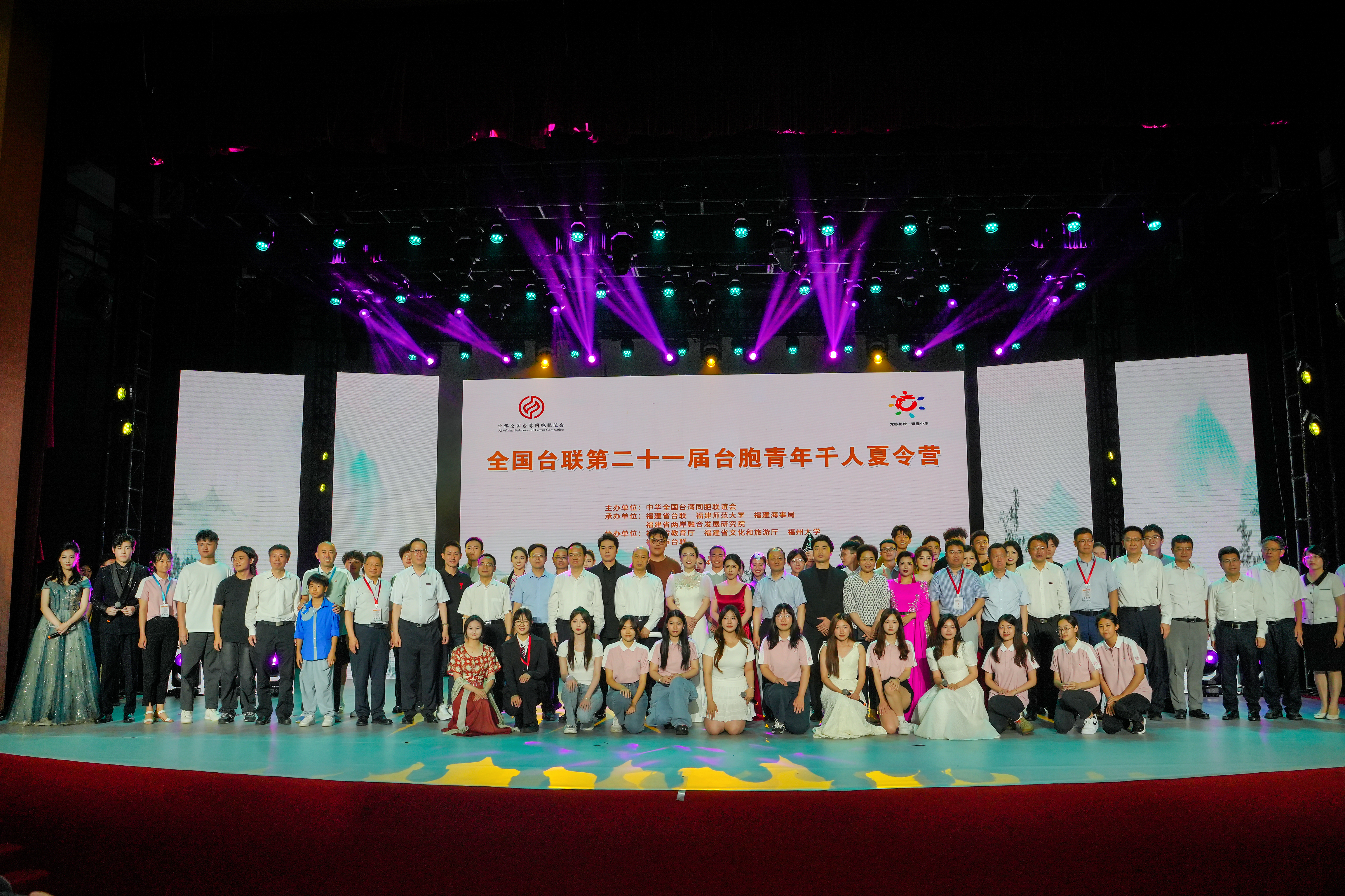 7月3日,由全国台联主办,福建省台联、福建海事局、我校和福建省两岸融合发展研究院承办,福建省教育厅、福建省文旅厅、福州大学、福州市台联协办的台胞青年千人夏令营开营式暨两岸青年联欢晚会在我校旗山校区举行。全国台联会长郑建闽,台盟中央副主席江利平,福建省人大常委会副主任、党组副书记林宝金,中央统战部、国台办、外交部、国家民委、文旅部、退役军人事务部、国家林草局、致公党中央、台盟中央、全国青联、中国侨联、台湾同学会及福建省相关单位领导来宾、部分台湾社团代表、台湾高校青年大学生,我校党委书记潘玉腾、校长王长平、副校长陈庆华,以及青年学生代表等共1500余人参加了开营式。开营式由全国台联副会长杨毅周主持。
