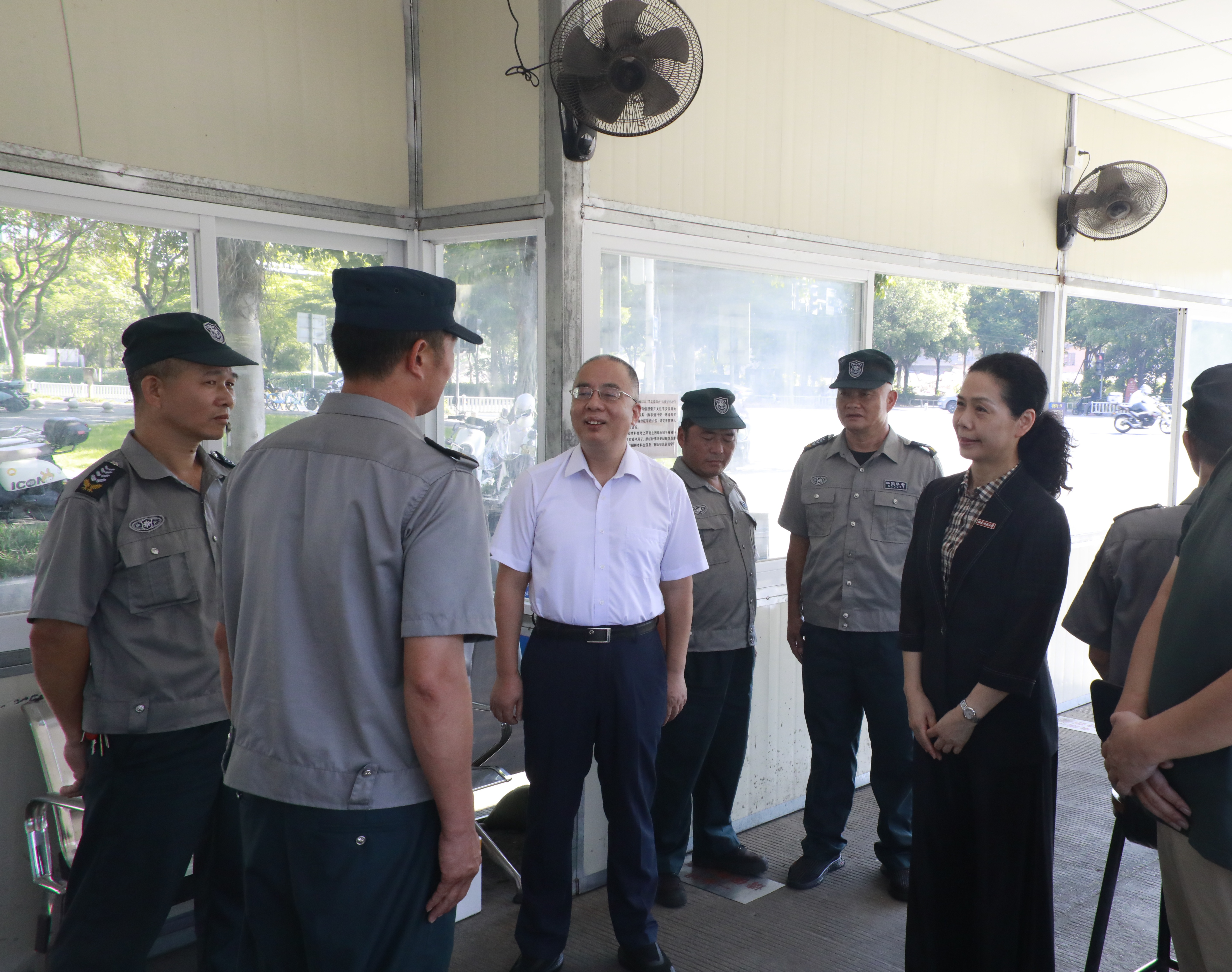 在旗山校区东门,郭立新一行看望慰问了正在执勤的安保人员,实地查看高温作业岗位环境,详细了解一线职工的工作和生活状况。他向高温下坚守岗位的一线职工致敬,感谢大家不畏酷暑、坚守岗位、默默付出,为学校建设发展贡献自己的力量,并叮嘱他们要加强劳动防护,预防中暑,平安度夏。