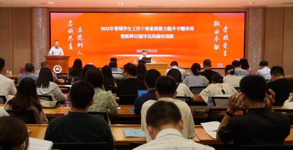 培训班于7月11日至13日在旗山校区宏达厅举行。校党委书记潘玉腾教授出席开班式并作首场专题报告,校党委副书记涂荣,学生工作部(处)、校团委全体干部,各学院分管学生工作负责人,全体专兼职辅导员、2022年新聘任辅导员等近200人参加了培训。