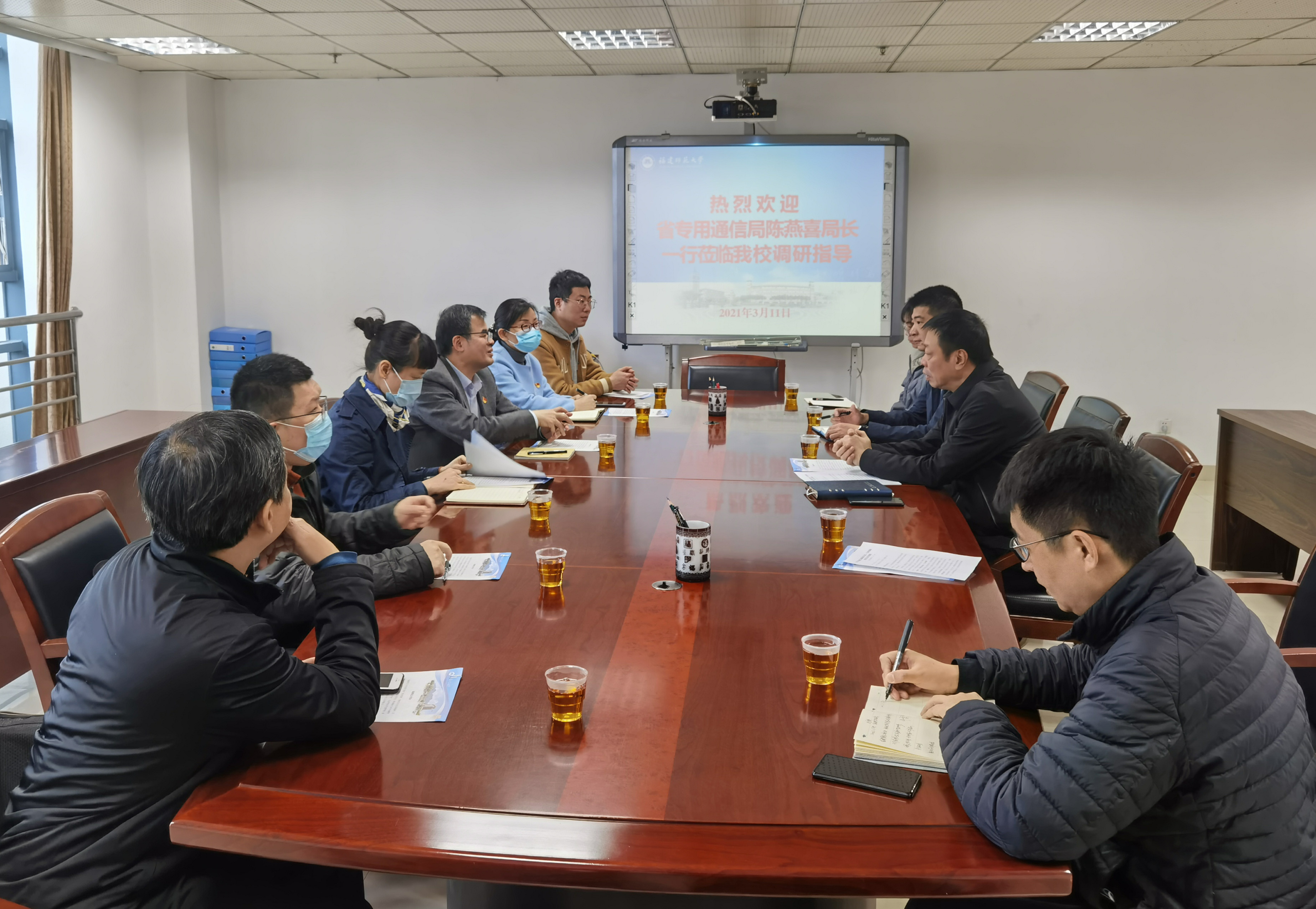 3月11日上午,省委办公厅厅务会议成员、省专用通信局局长陈燕喜率队来校调研。校党委李绚副书记,党政办公室、网络与数据中心等单位相关负责同志陪同调研。座谈会上,李绚副书记对陈燕喜局长一行表示热烈欢迎,并简要介绍了学校基本情况。双方结合各自工作进行了深入探讨,就促进交流、加强合作、服务发展等方面问题达成共识。会后,陈燕喜局长一行还实地考察了学校网络与数据中心及相关重点实验室,对我校网络信息化工作和相关学科建设给予充分肯定。(党政办公室、网络与数据中心)