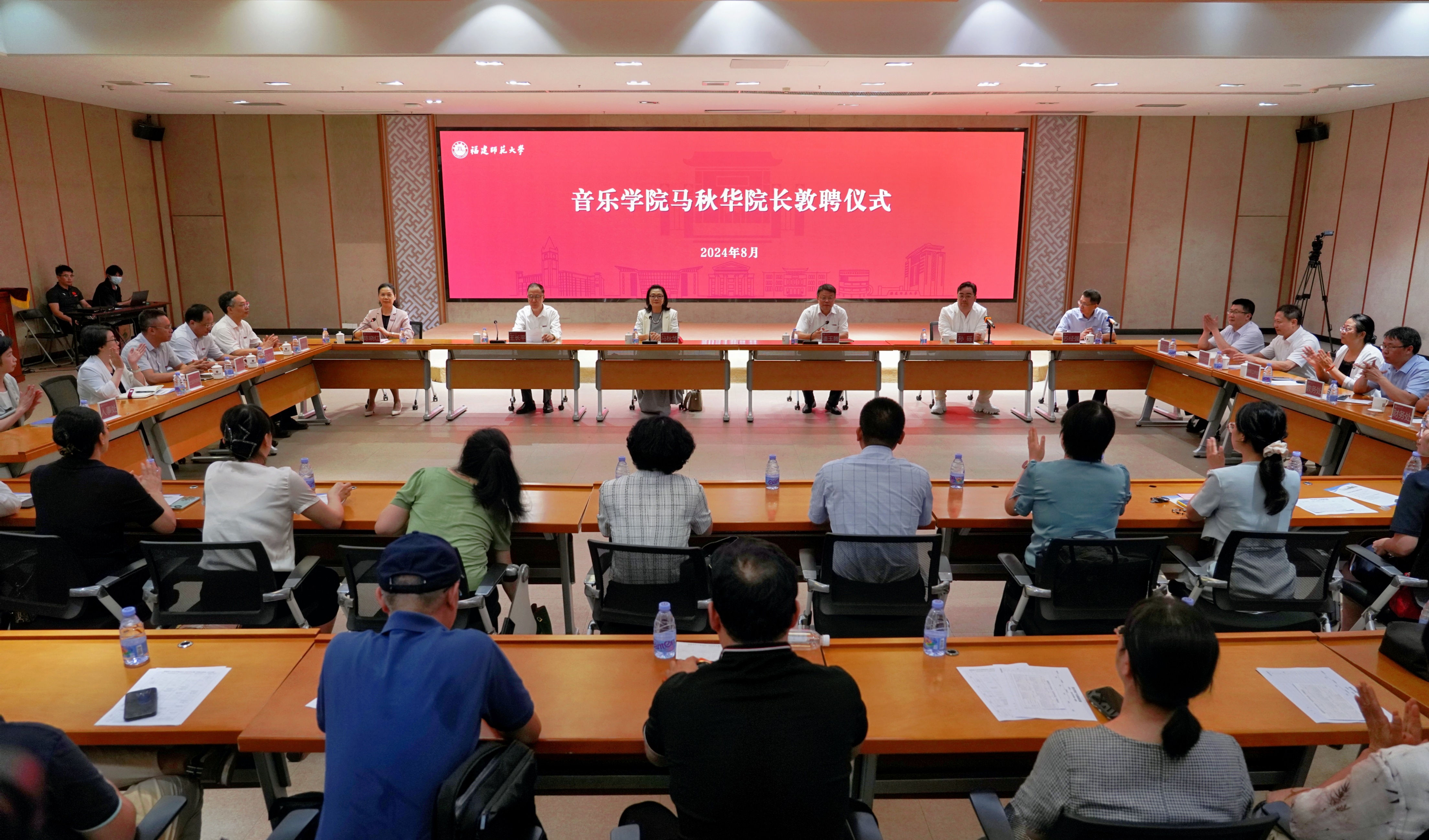 马秋华教授感谢学校领导、各位同事和全体师生的信任与肯定,深感担任音乐学院院长责任重大、使命光荣。她深情回忆了与福建福州的不解之缘,对福建师大办学历史和办学成就表达了敬佩之情,也肯定了音乐学院在全国的影响力。她表示,在学校党委和行政的坚强领导下,将与音乐学院领导班子和师生员工一道,立足学院学科发展实际,发扬学院优良传统,借鉴国内外优秀经验,抓好师资队伍建设,培养造就更多高层次专业化文化艺术人才,在保持音乐学学科原有发展态势的基础上,将优势方向强势化、弱势方向优势化,不辜负学校党委和师生的期望,为国家和福建教育文化艺术事业繁荣发展作出新的更大贡献。