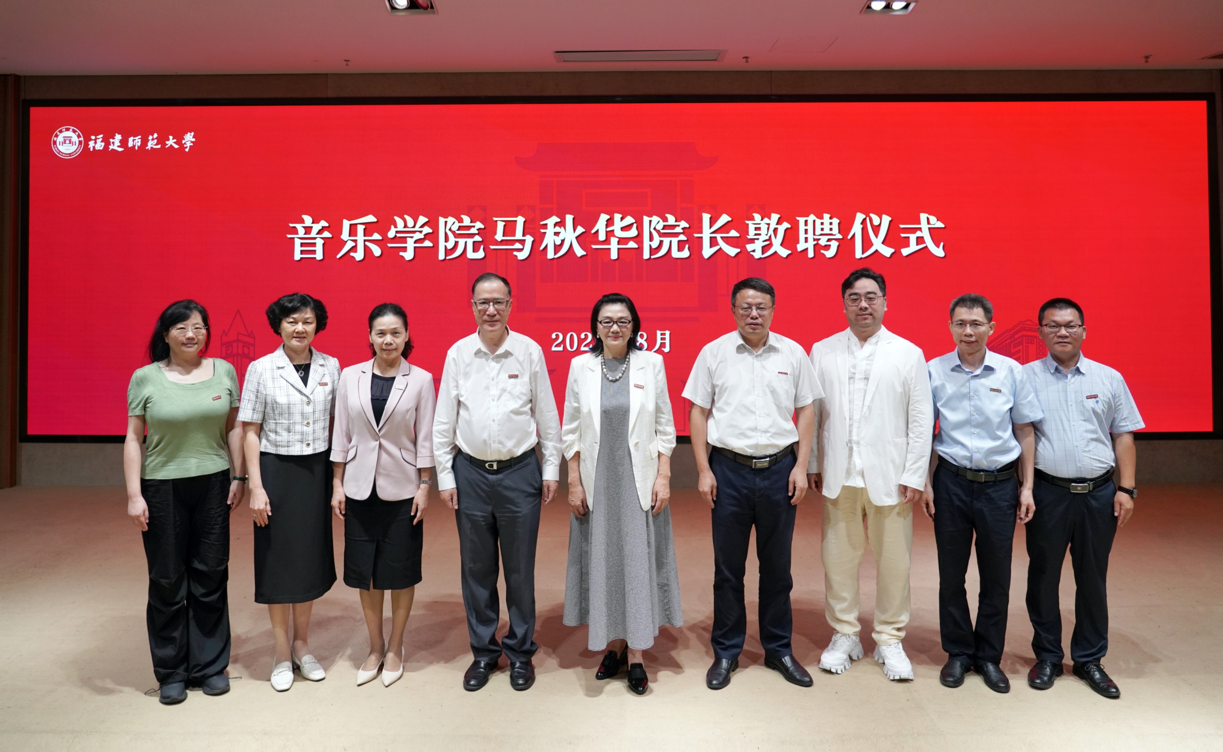 敦聘仪式于8月31日在旗山校区宏达厅举行。校领导潘玉腾、王长平、陈晓红,我校博士生导师、福建艺术职业学院院长孙砾教授,相关职能部门负责人,音乐学院全体教职员工和部分学生代表参加了敦聘仪式。仪式由校党委副书记陈晓红主持。