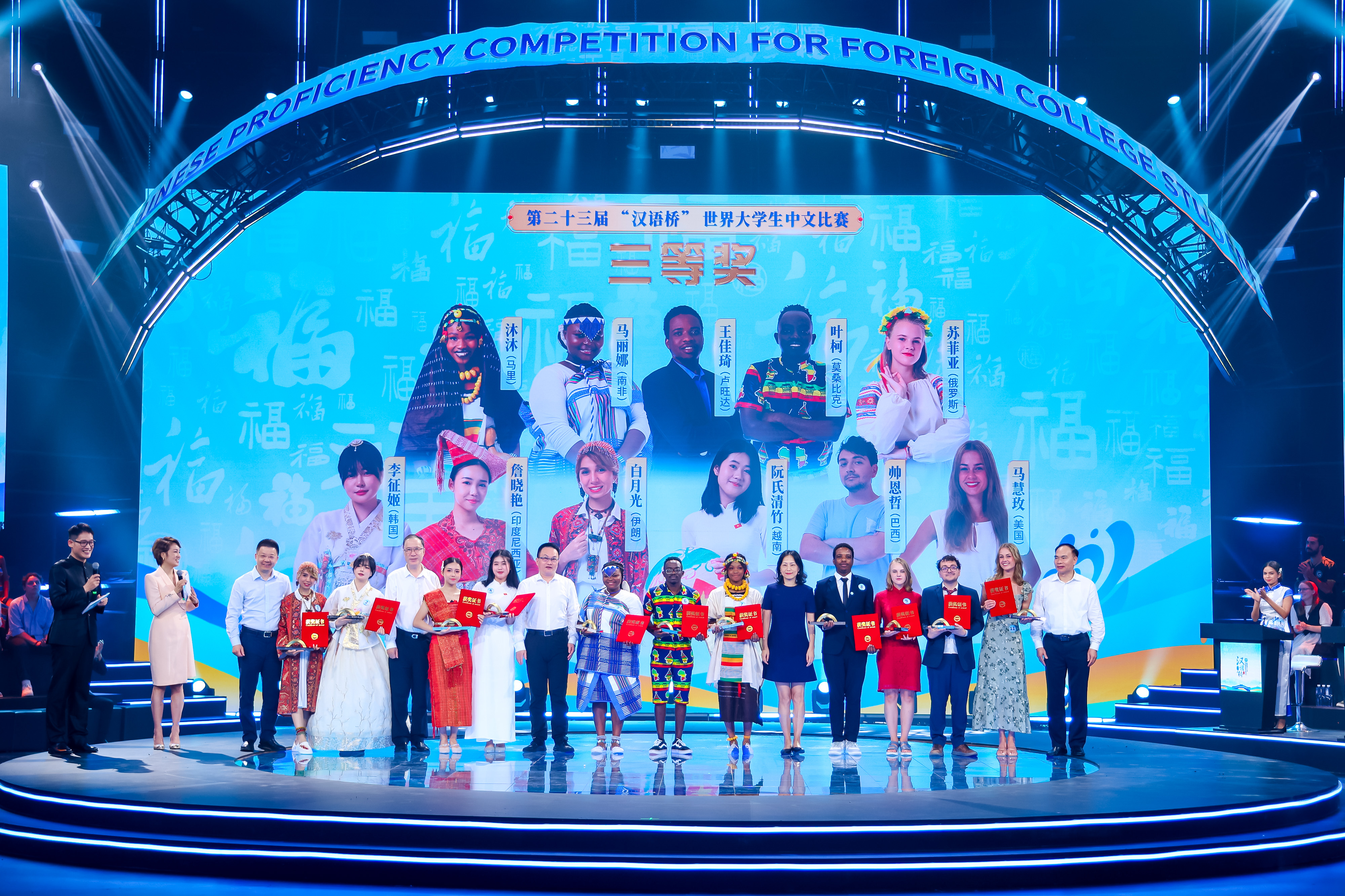 据悉,第23届“汉语桥”世界大学生中文比赛于今年2月正式启动,经过海外预选赛层层选拔,来自130个国家和地区的147名选手在北京、福建两地参加全球决赛,包含“过桥”赛、晋级赛和总决赛。期间,我校承担比赛题库建设与审核、师生志愿者队伍选拔培训等工作。