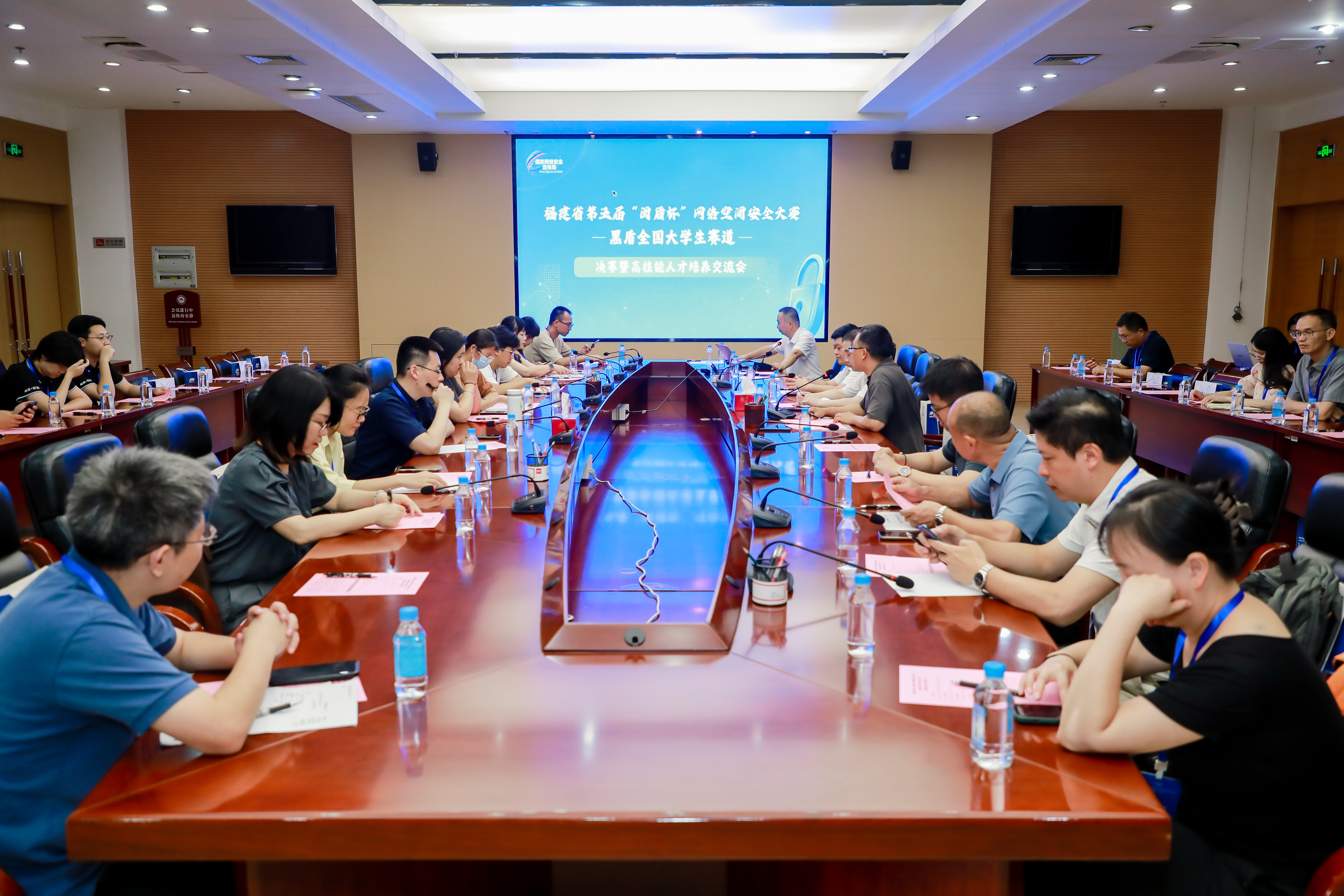 9月1日,由省委网信办、省教育厅、省公安厅、省通信管理局联合主办,我校和福建广电网络集团、福建船政交通职业学院共同承办的福建省第五届“闽盾杯”网络空间安全大赛(黑盾全国大学生赛道)线下决赛在我校成功举行。省委网信办副主任黄逸群,省公安厅副厅长胡楠,省通信管理局副局长张国旗,福建广电网络集团党委委员、总工程师刘敏文,省教育厅高教处副处长刘典文,福建船政交通职业学院副院长陈艳红,我校校长王长平,以及各协办单位负责同志、参赛师生共160余人参加了开幕式。王长平代表学校致辞。