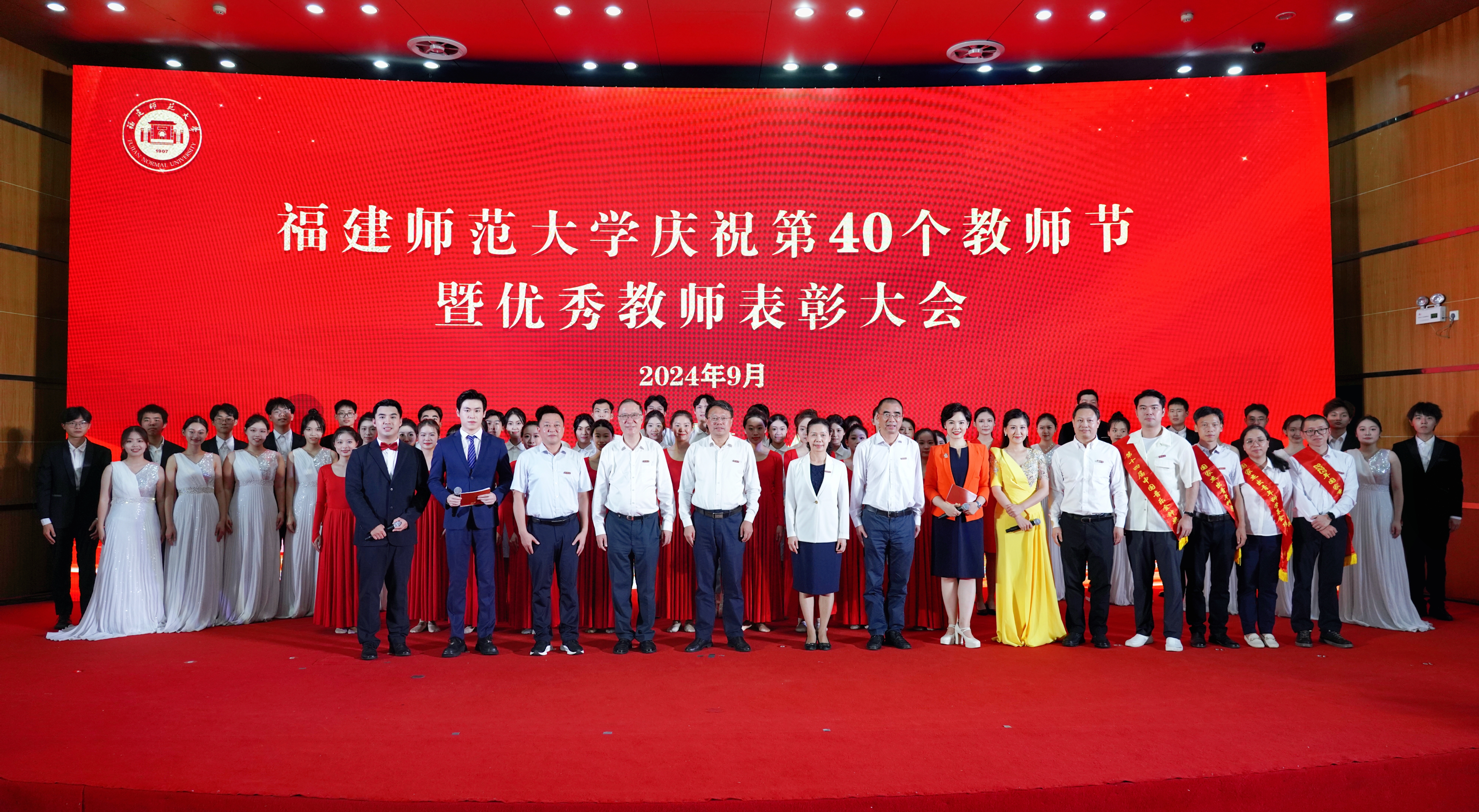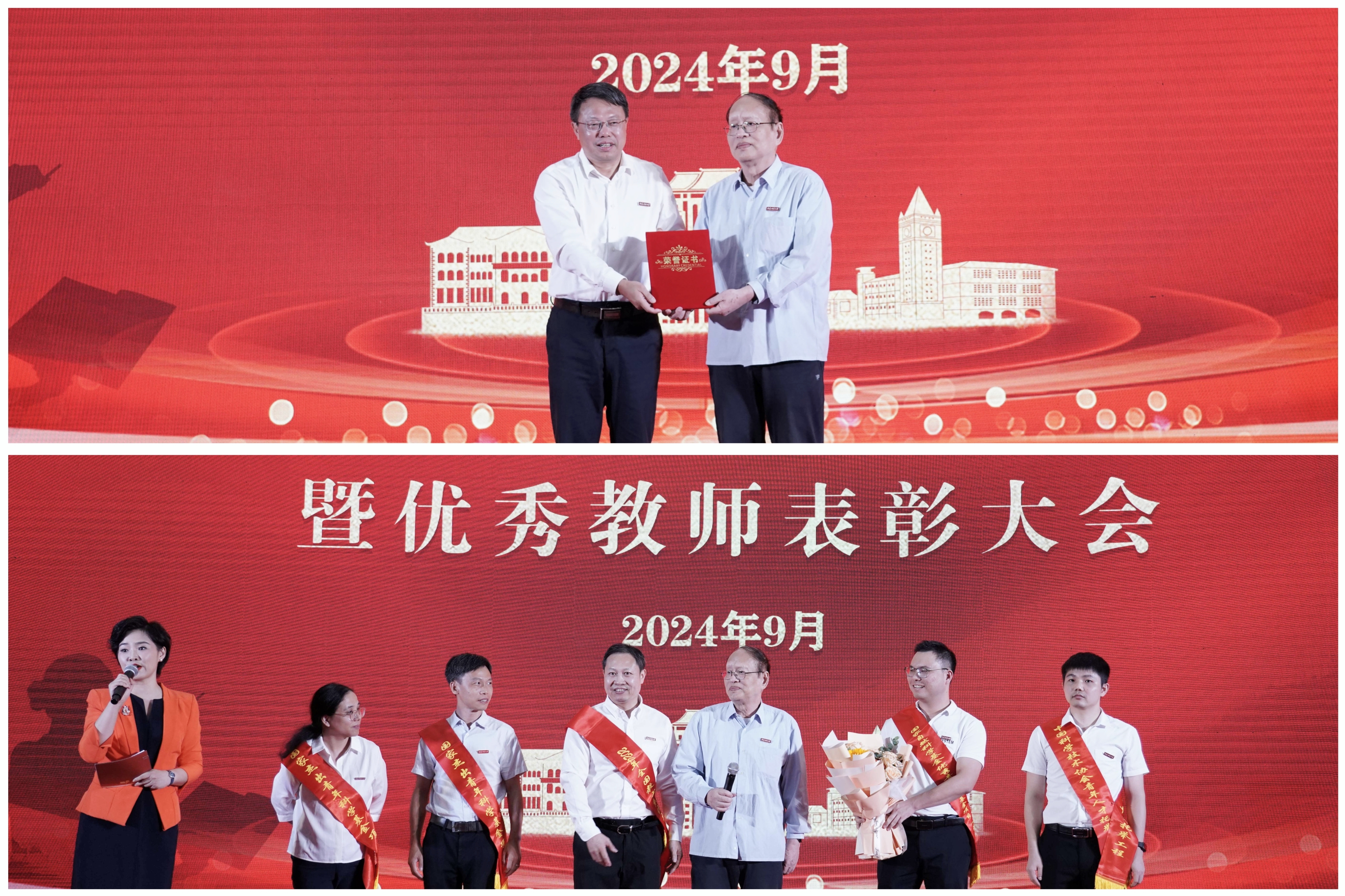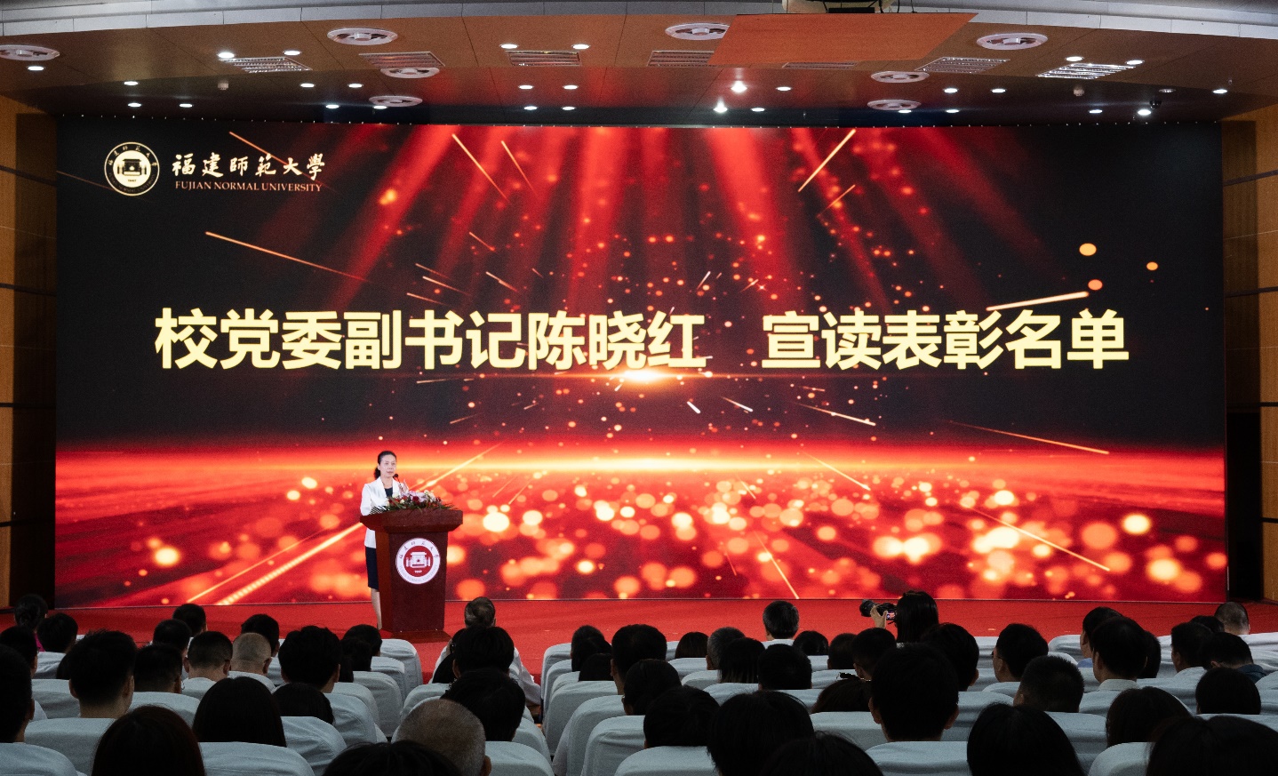 会议于9月10日在旗山校区学术大讲堂举行。校领导潘玉腾、王长平、陈晓红、涂荣、郑家建,受表彰的先进集体、个人代表,机关部处、学院、教辅单位、公司、医院、附属学校主要负责人,新入职教师,师范生代表等在主会场参会;其他中层干部,各民主党派、统战团体、无党派人士联谊会负责人,教职员工代表和学生代表等在分会场通过网络直播同步参会。表彰环节由校长王长平主持。