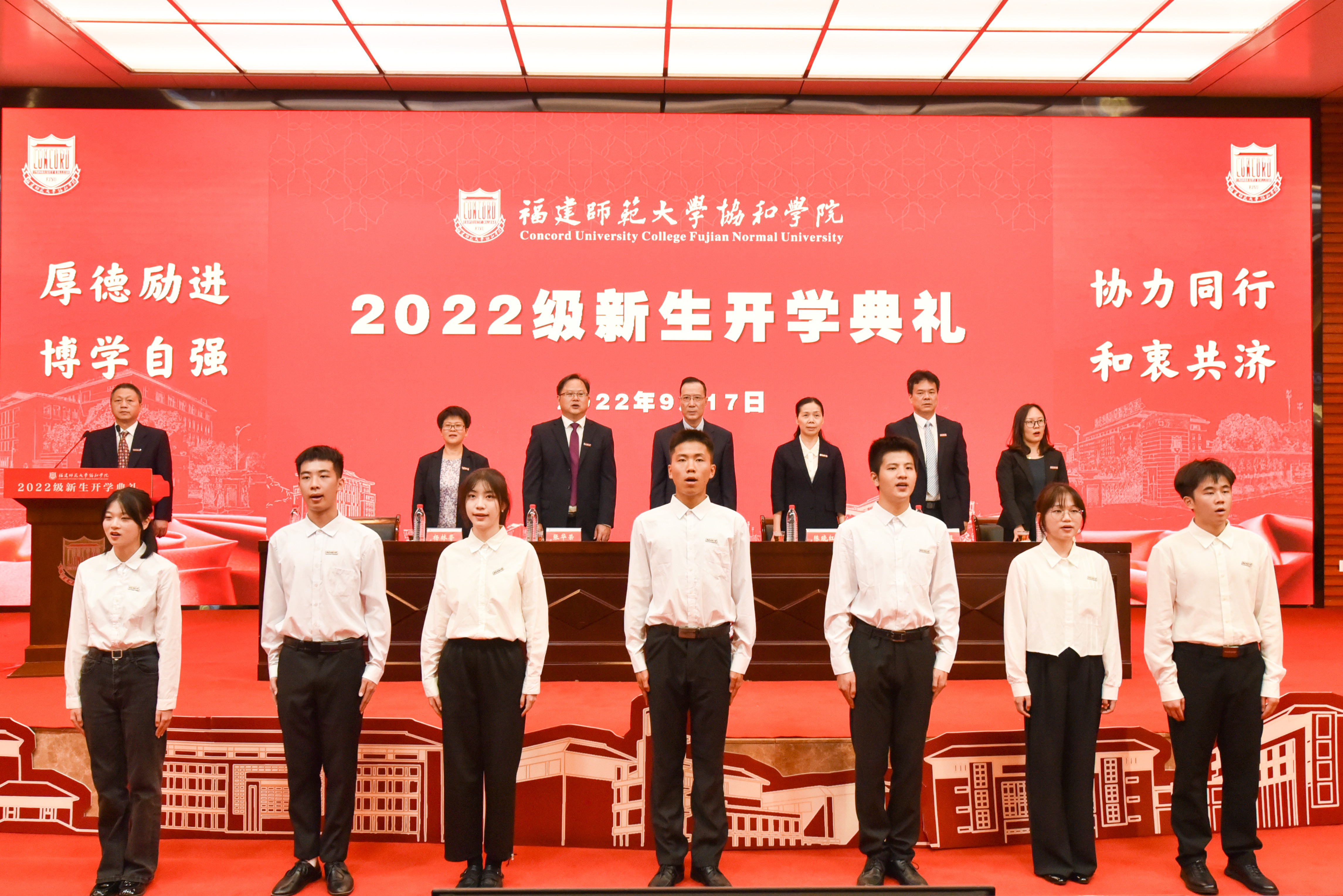 典礼在雄壮的国歌声中拉开序幕,协和学院院长张华荣向2022级新生表示热烈欢迎,鼓励同学们不断完善自我、成就精彩人生,并提出三点希望:一是志存高远,勇于担当。希望同学们胸怀“国之大者”,立大志、明大德、成大才、担大任,树立远大理想;二是潜心立学,勤勉务实。希望同学们珍惜大学宝贵时光,勤于“广博”之学,筑牢知识根基,做到求真理、悟道理、明事理,将所学转化为本领和能力;三是敢为人先,砥砺前行。希望同学们致知天下,行于山河,充分利用各类资源,勇于探索,把学问做到实处,将理想付诸行动,在天地间探寻真知,在知行中书写华章。