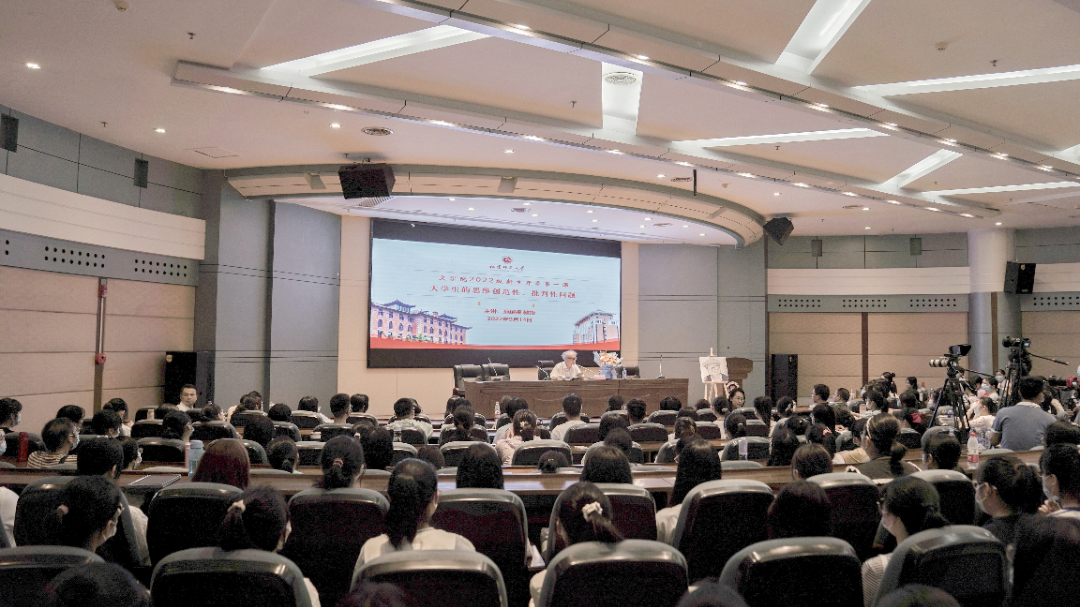 9月14日,我校文学院2022级新生开学第一课在仓山校区邵逸夫楼学术报告厅举行,著名文艺理论家、全国高校黄大年式教师团队领衔专家、我校文科资深教授孙绍振教授为新生授课,副校长郑家建,学院党政班子、全体教职工以及2022级全体新生参加。