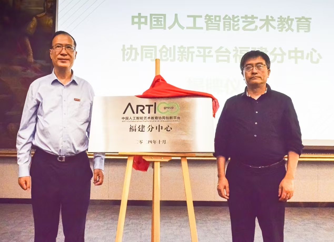 开幕式上,我校美术学院负责人介绍了中国人工智能艺术教育协同创新平台福建分中心的的核心宗旨。中国人工智能艺术教育协同创新平台发起人、华中科技大学建筑与城市规划学院副院长蔡新元教授发来祝贺视频,他期待福建分中心带领福建各高校快速地做出成绩,在智能时代的浪潮中成为人工智能驱动艺术与设计教育新范式的引领者。随后,现场为10所副主任单位院校及首批12所会员单位院校颁发聘书。
