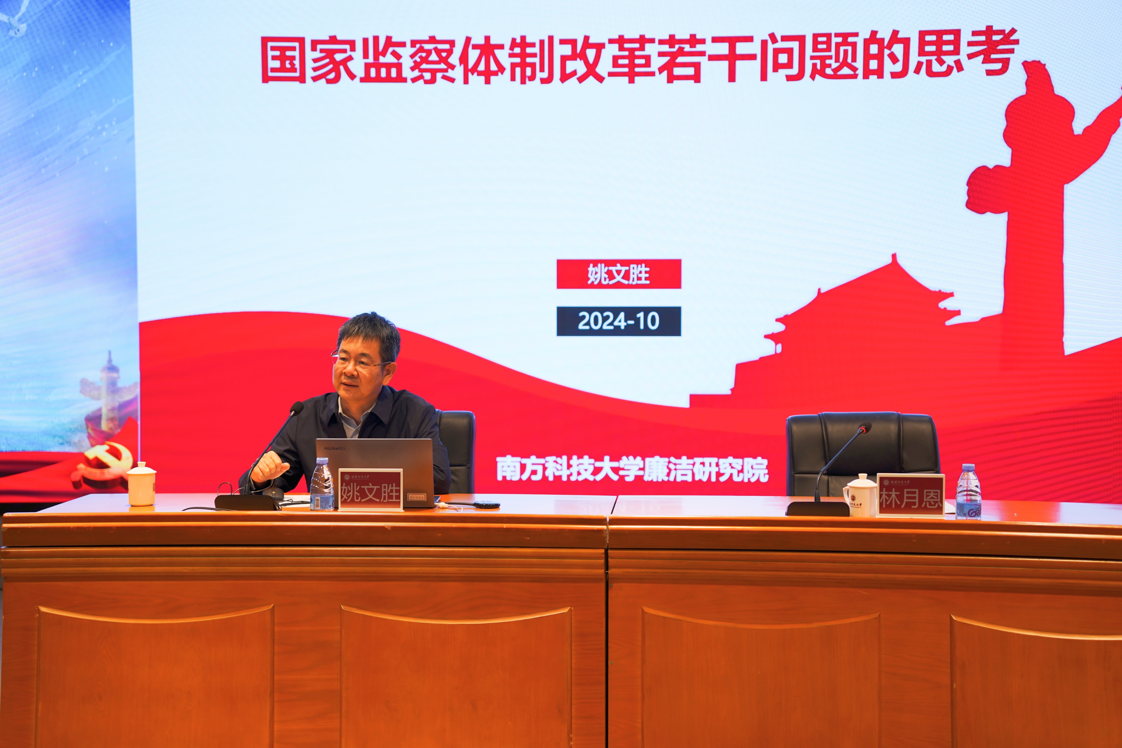 林月恩向姚教授对学校纪检监察学科建设的指导支持表示感谢。他指出,党的二十届三中全会对深化纪检监察体制改革、深入推进党风廉政建设和反腐败斗争、纵深推进全面从严治党提出了新任务新要求。姚教授的报告站位高远、主题鲜明、内容丰富、深入浅出,具有很强的针对性、指导性和实践性,为我校聚焦纪检监察学重大理论和实践问题,持续推进纪检监察学科建设、理论研究和实践探索提供了有益启示。