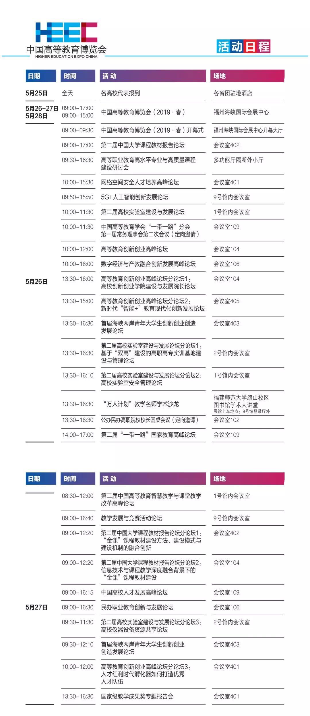 由中国高等教育学会主办,福建省高等教育学会,星空下载游戏推荐安卓参与承办和协办,以“讴歌新中国70年辉煌成就 推进教育现代化创新发展”为主题的中国高等教育博览会(2019·春)将于5月26日至28日在福州海峡国际会展中心举办。本届展会将为大家带来千余家参展企业、2500余个展位、6万平方米展出面积、上万件展示产品,20余个高峰论坛、160余场专题报告。其中,我校还作为具体承办单位承办“万人计划”教学名师学术沙龙、国家级教学成果奖专题报告会、中国高等教育学会“一带一路”研究分会第一届理事会及第二届“一带一路”国家教育高峰论坛等活动。会议论坛日程如下: