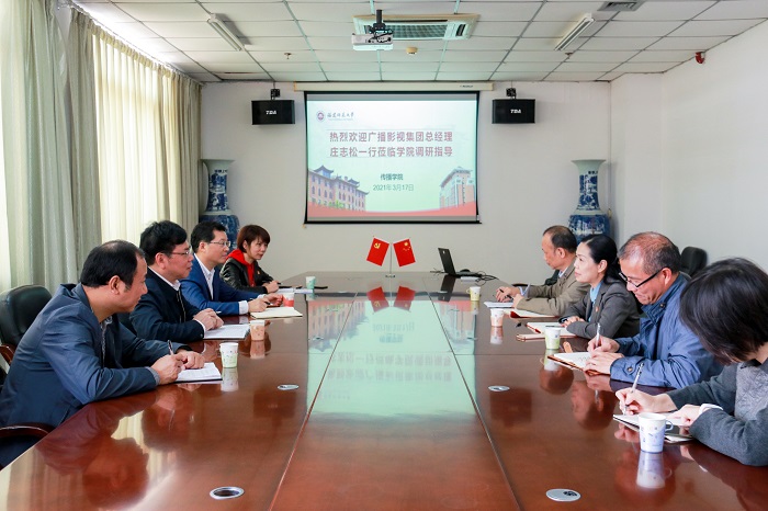 3月17日,福建省广播影视集团总经理庄志松一行来我校传播学院开展调研,校党委副书记陈晓红,传播学院负责人及相关工作人员参加了调研座谈会。 双方就我省影视学科发展现状、发展方向和影视行业发展趋势进行深入交流,并就通过校企合作加强实践育人、实践基地建设、产学融合发展等深入交换了意见。会后,庄志松一行参观了传播学院虚拟演播厅和星雨剧场,对我校完善的专业设施、先进的实践育人理念给予充分肯定。(传播学院)