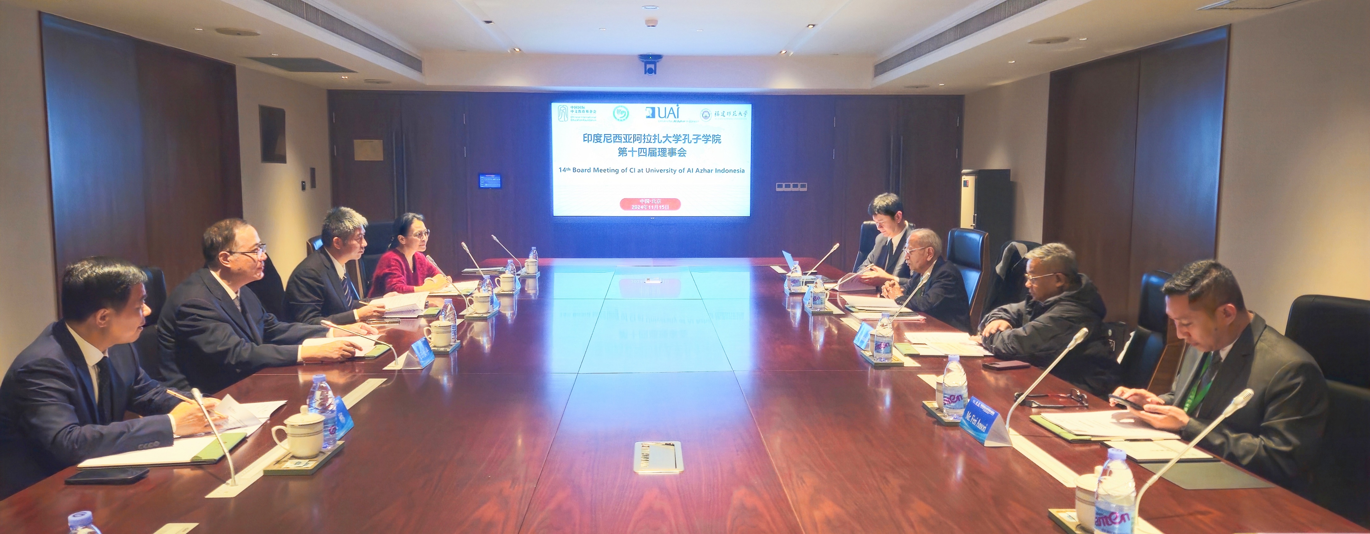 会议期间,我校分别与印尼阿拉扎大学、菲律宾红溪礼示大学召开了孔子学院第十四届理事会,王长平、阿拉扎大学校长Asep Saefuddin、红溪礼示大学校长Joseph E.L.Angeles,以及孔子学院中外方院长、理事会其他成员出席会议,海外教育学院相关人员列席。王长平作为孔子学院中方理事长,代表学校分别在2所孔子学院理事会上致辞。在印尼阿拉扎大学孔子学院理事会上,王长平表示,阿拉扎大学孔子学院依托地处印尼政治、经济、文化中心的区位优势,充分发挥中印尼两国教育、文化交流的窗口和桥梁作用,谱写了学院高质量发展新篇章,希望两校以孔子学院内涵建设为抓手,进一步深化交流合作,为中印尼友好事业培养更多参与者、受益者、支持者。
