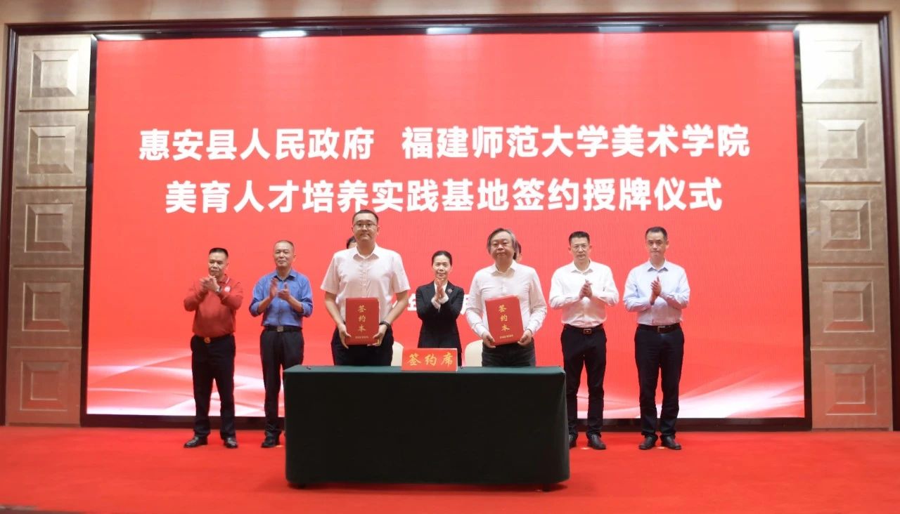 惠安县人民政府和我校共建美育人才培养实践基地,是全面贯彻党的教育方针,落实习近平总书记关于美育工作重要论述和来闽考察时重要讲话精神的具体体现,将按照“相互支持、优势互补、互惠双赢、共促发展”的原则,围绕人才培养、乡村振兴、对台交流、科技创新等领域开展进一步合作,大力探索学校优势资源助推地方高质量发展、地方高质量发展反哺学校全方位发展的校地合作新模式,为奋力谱写中国式现代化新福建新篇章作出新的更大贡献。