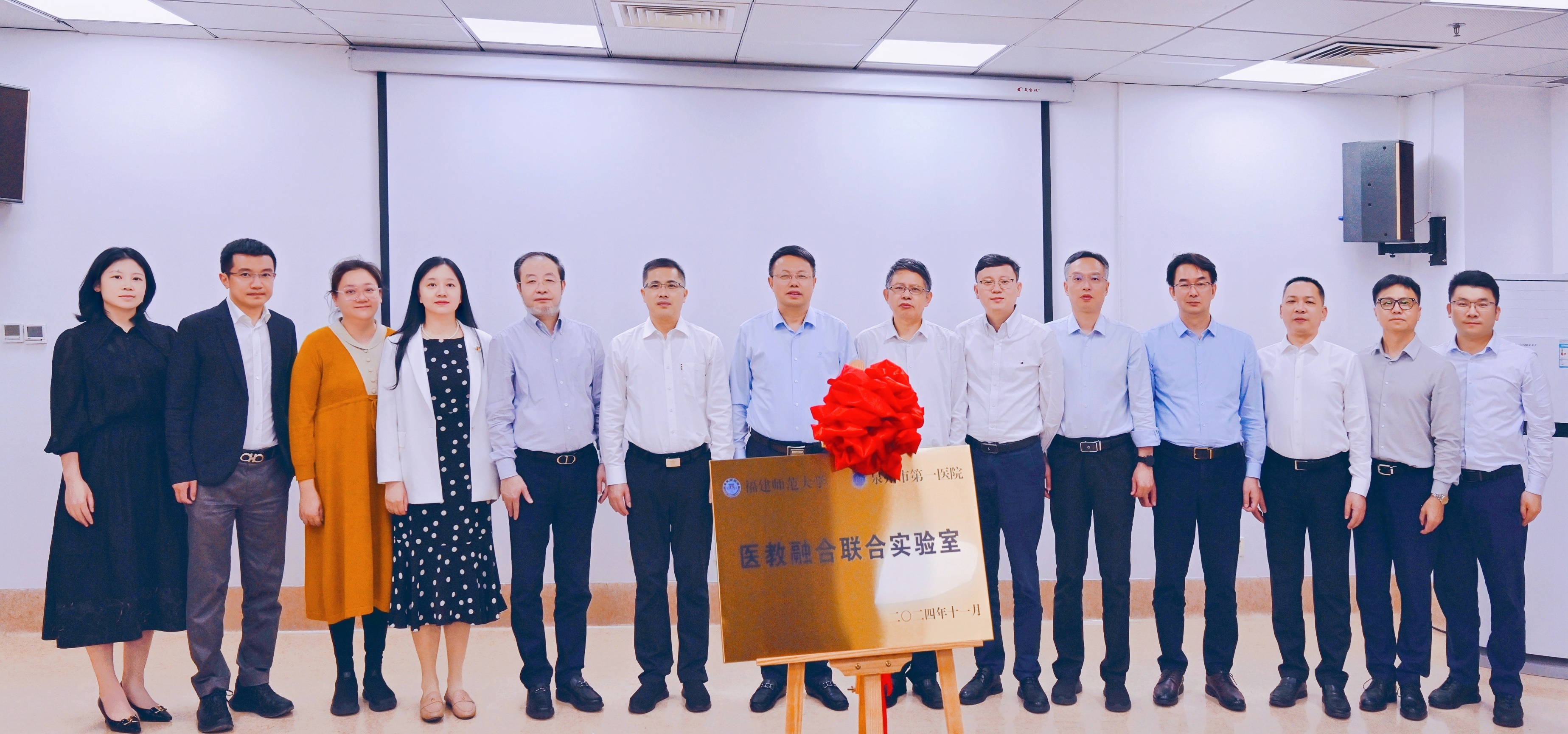 在泉州市,我校与泉州市第一医院共同揭牌成立“医教融合联合实验室”,并进行了座谈交流。泉州市副市长黄文捷、泉州市卫健委主任苏松炎、泉州市第一医院院长苏智军、副院长郑理玲,我校原副校长陈庆华参加了有关活动。会前,与会人员实地参观了泉州市第一医院的心血管外科、心内CCU(重症监护病房)、内镜中心及护理诊疗中心等重点科室,深入了解了医院在医疗服务与科研创新方面的最新成果。揭牌仪式上,潘玉腾表示,此次联合实验室的成立,是校院双方在医教协同领域的一次重要探索,希望双方加大在科研资源共享、设备优化配置等方面合作深度,推动产学研紧密结合,进一步提高科研成果转化成效,为区域发展注入新动能。苏智军介绍了泉州市第一医院基本情况,表示泉州市第一医院将依托自身优势,力争与我校在科研平台建设、课程申报等领域实现更大突破。揭牌仪式后,双方合作课题负责人以医教融合发展为中心,就未来合作项目的落地进行了深入研讨。
