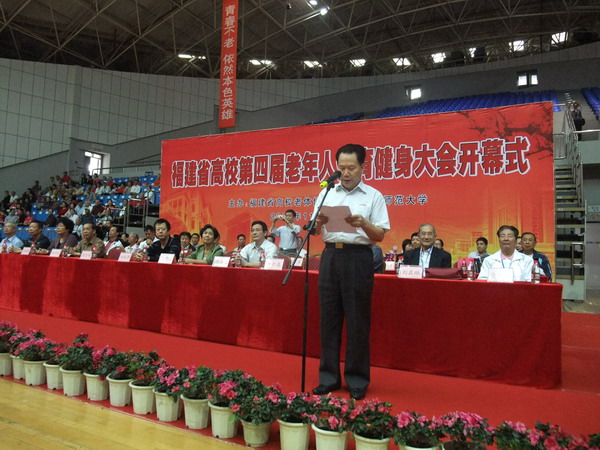 11月9—12日,福建省高校第四届老年人体育健身大会在我校仓山校区举行。省委教育工委副书记刘剑津,省教育厅副厅长吴仁华,省老体协领导孙君梅、林东星、郑声润、陈尚义、刘桂荣、黄金森、何华元、潘世墨、刘在琳、樊祺泉、黄庆兴、叶尚菁、何友信,福州大学原纪委书记李正午,福建中医学院原党委副书记马骏,集美大学原副校长蔡金萱、原校长助理赖强谋,福建广播电视大学原党委副书记、纪委书记张泰柏,我校校领导张金栋、游小波、许明,以及运动员、裁判员、工作人员、青年志愿者参加了会议。