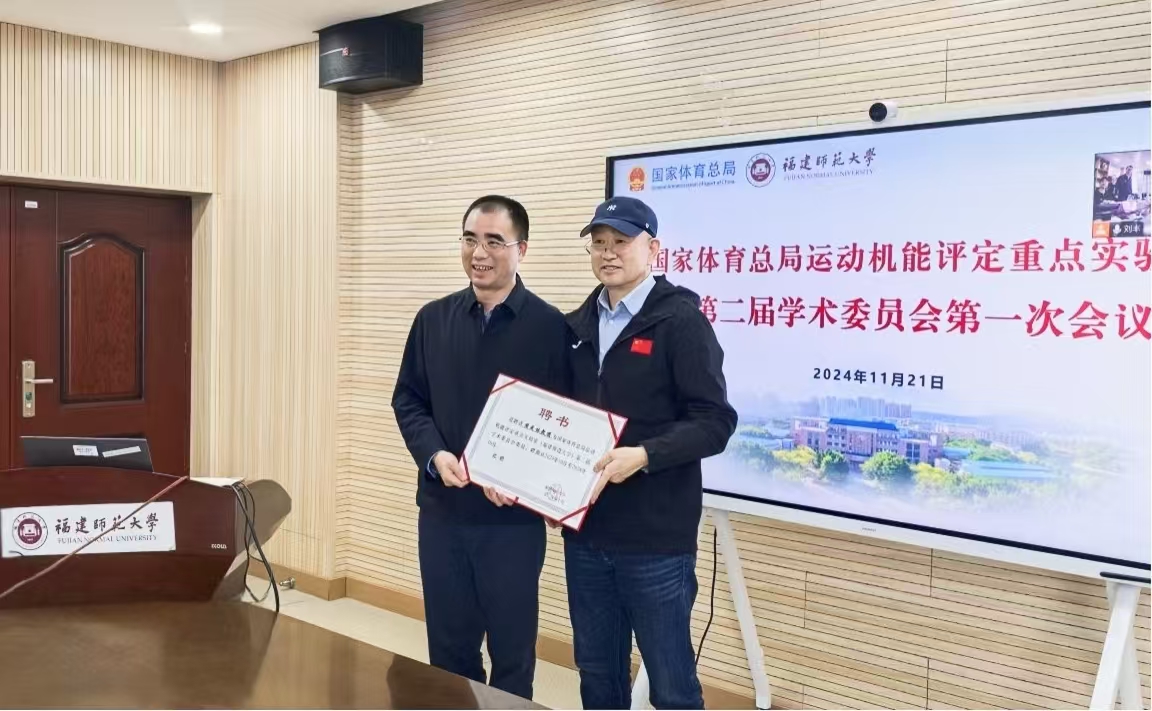 会议于11月21日在旗山校区以线上线下相结合的方式召开。新一届学术委员会主任、上海体育大学原校长陈佩杰教授,新一届学术委员会副主任、国家体育总局运动医学研究所原所长谢敏豪教授,副校长郑家建,以及来自国内知名高校的专家学者、我校科学技术处、体育科学学院负责人及实验室骨干成员参加会议。科技处负责人代表学校宣读了第二届学术委员会组成人员名单,郑家建向委员们颁发聘书。