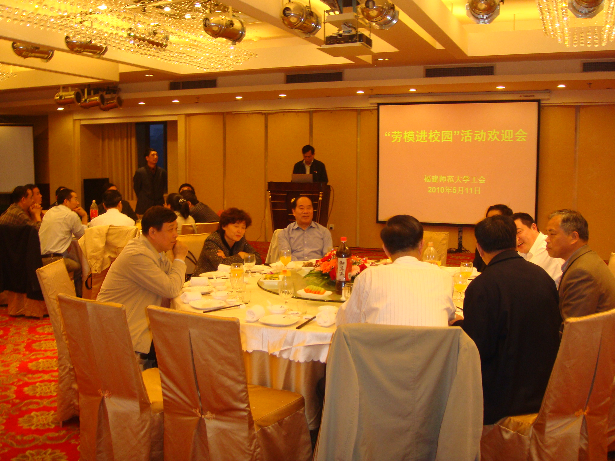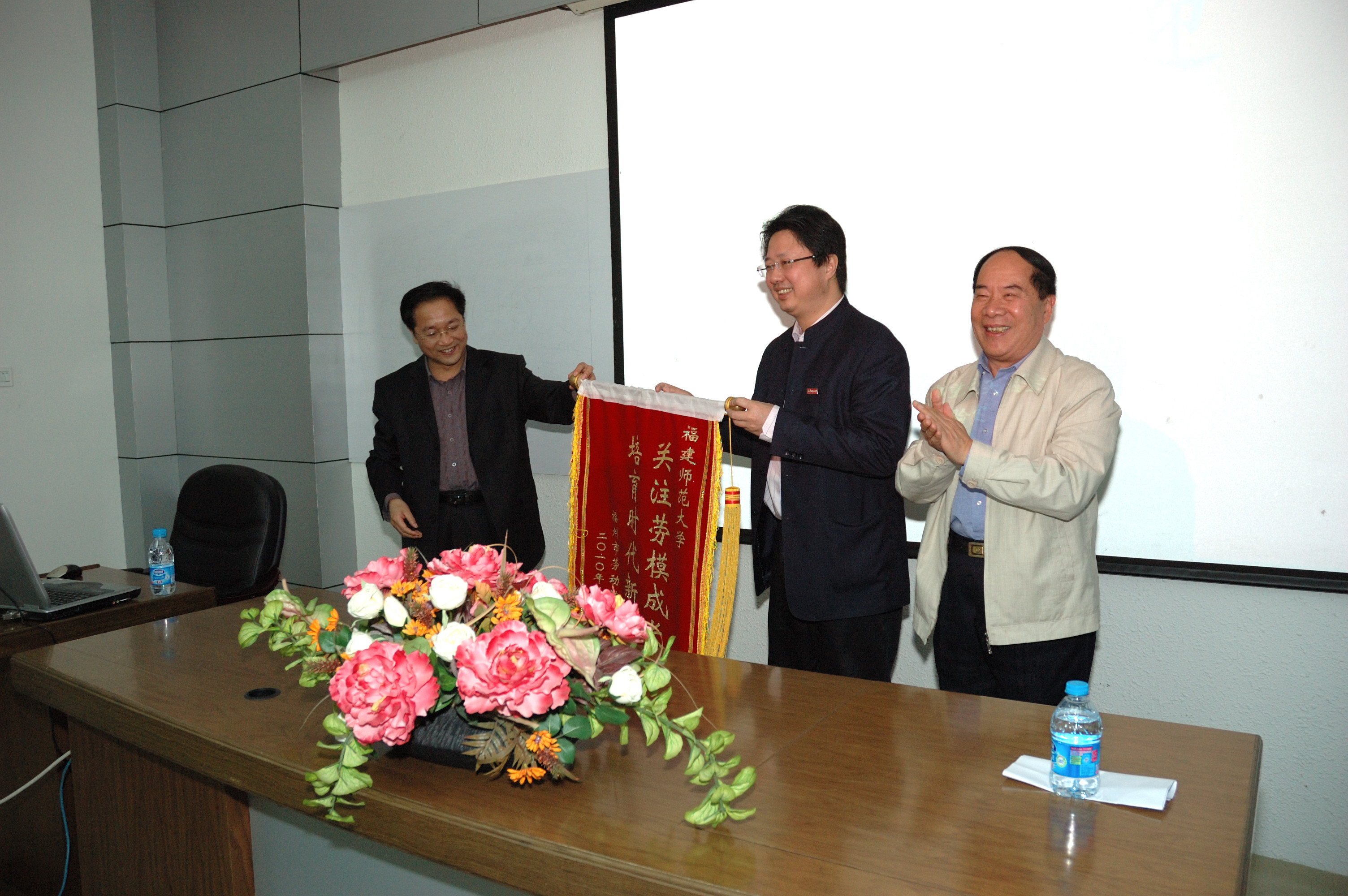 黄汉升校长对“劳模进校园活动”走进师大表示欢迎,对福州市总工会和劳模协会对我校教学、科研、实验室建设和工会工作的关心和支持表示感谢。张旭村介绍了“劳模进校园活动”的目的、意义,高度评价了我校的劳模工作,并向我校赠送了“关注劳模成长,培育时代新风”锦旗。