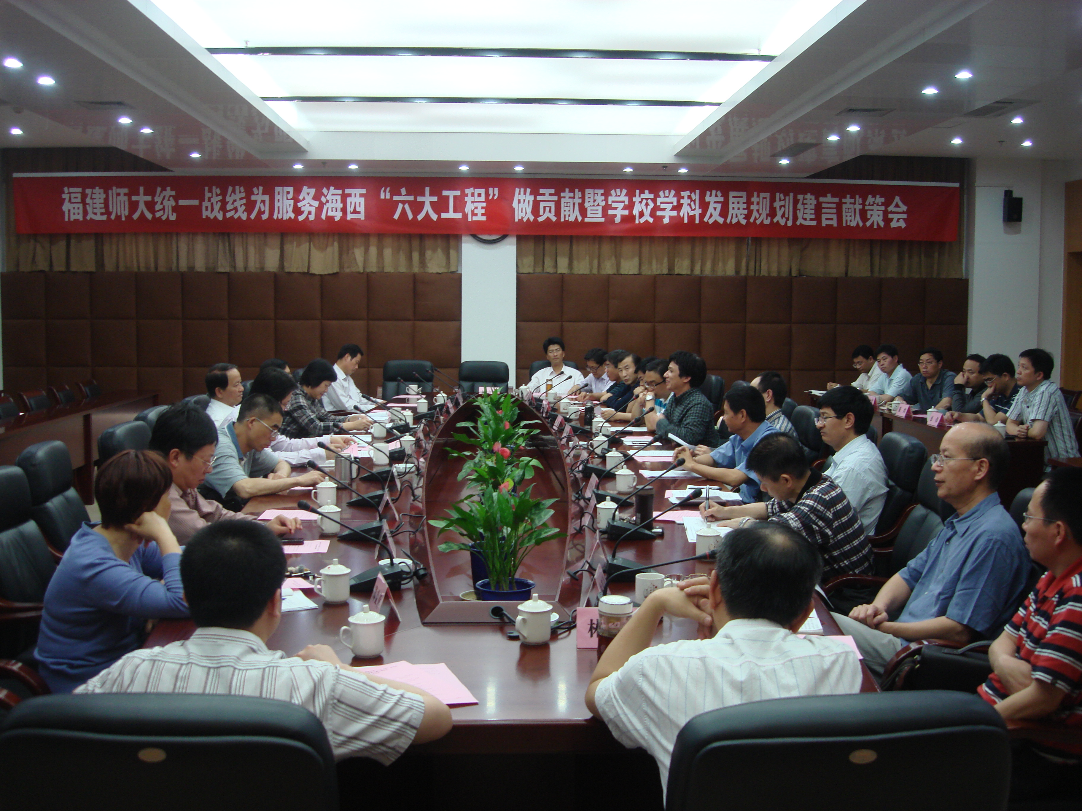 在认真听取代表们的发言后,黄汉升校长指出,校各民主党派、统战团体和无党派人士联谊会对加强学校学科建设提出的意见和建议主题突出,有深度、有高度,学校将认真研究和吸收大家的意见和建议,认真制定、不断完善学科发展规划。罗萤书记在讲话中表示,各位代表的意见和建议非常中肯,富有建设性,听了很受感动,很受启发,充分体现了我校统一战线成员对提升学校学科建设和科学发展水平的真诚关心、支持和帮助。希望包括统一战线成员在内的全体师大人,立足岗位、紧抓机遇、团结拼搏,为加快学科发展,为实现学校的奋斗目标、更好地服务海峡西岸经济区建设作出应有的贡献。