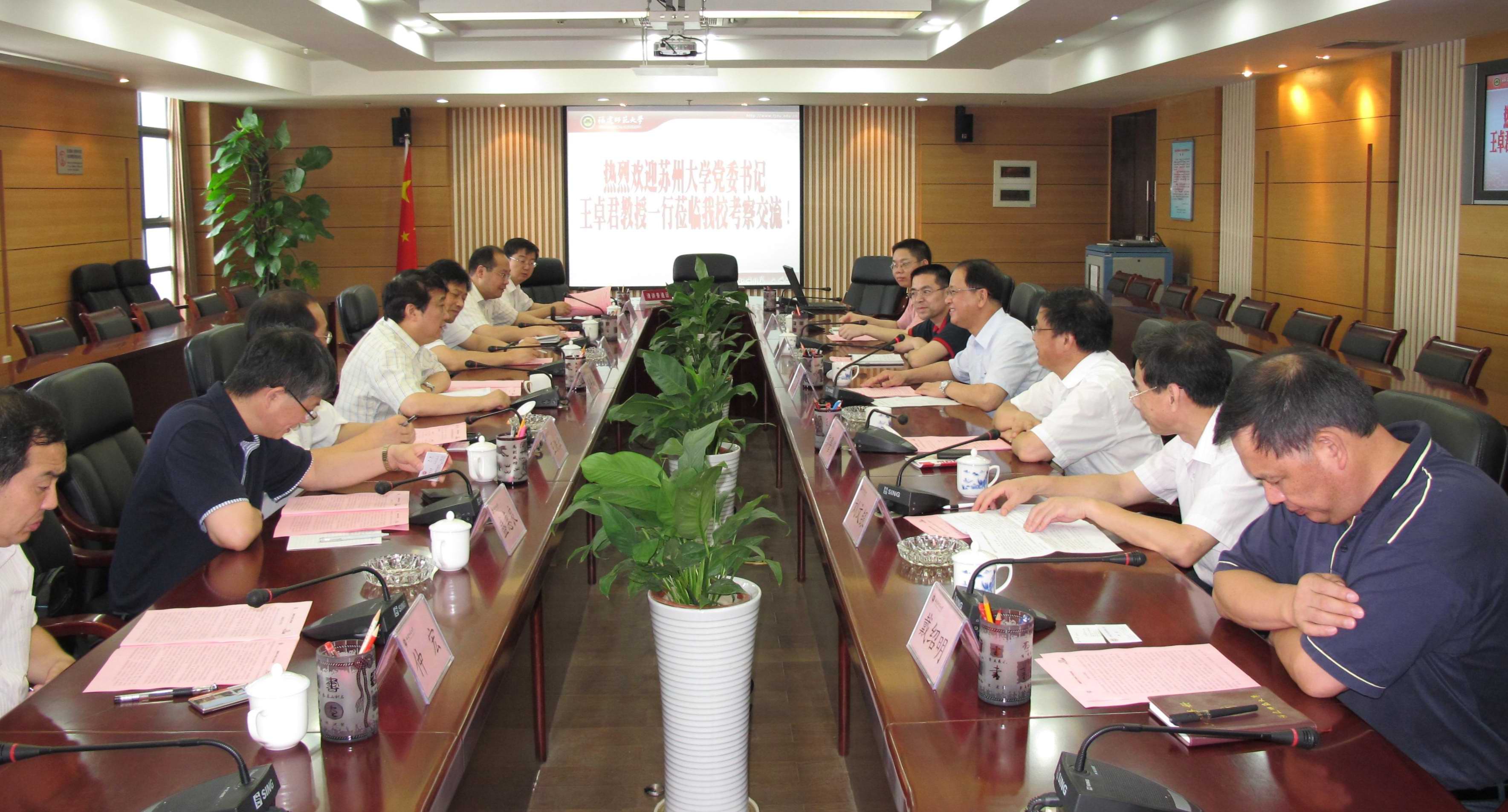罗萤代表学校对来访客人表示热烈的欢迎,并从历史沿革、学科建设、师资队伍、教学科研、对外交流等方面简要介绍了学校的办学概况,以及我校在完善校院二级管理体制、优化资源配置方面的一些主要做法。会上,双方围绕校内二级单位经费管理、大型设备仪器共享、推动节能降耗工作等主题进行了深入的交流和探讨。