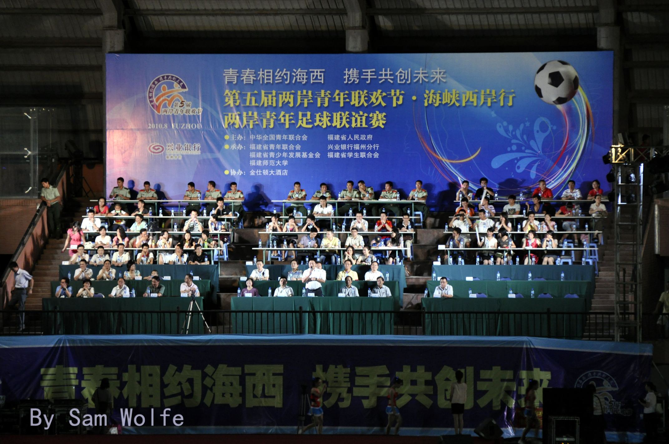 本次比赛由中华全国青年联合会、福建省人民政府主办,福建省青年联合会、福建省青少年发展基金会和我校等单位共同承办。团省委书记赖军,福建省轻纺(控股)有限责任公司总经理郑震,我校党委书记罗萤、副书记黄锦平、副校长李敏,与现场近5000名观众一起观看了这场融竞技、娱乐于一体的精彩赛事。