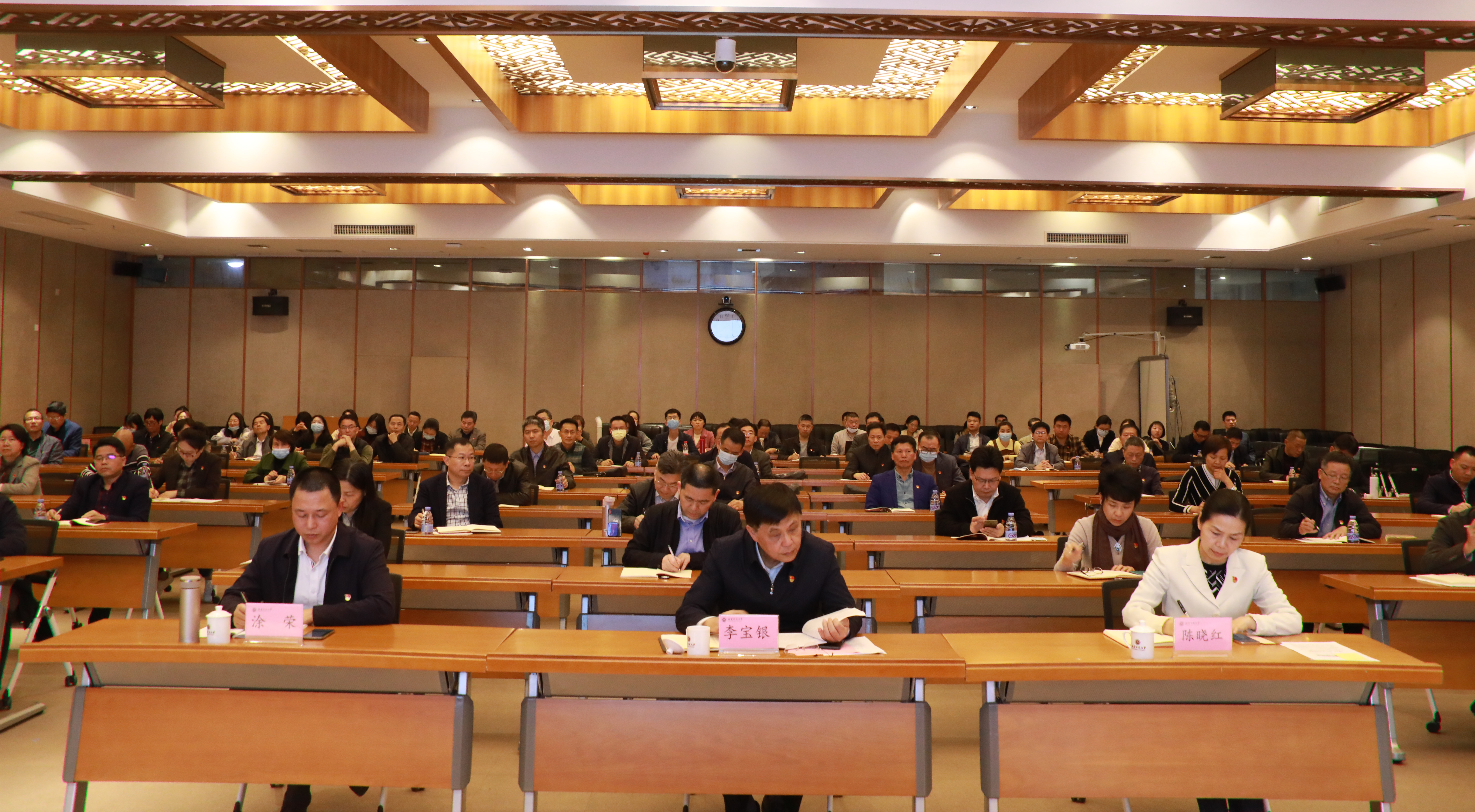 报告会同时作为校院两级党委理论学习中心组(扩大)学习会,设主会场和分会场。校领导,机关部处、二级单位党组织主要负责人,青年师生代表在宏达厅主会场参加学习;其他中层干部、二级单位党组织中心组成员、党支部书记,师生党员代表等分会场参加学习。