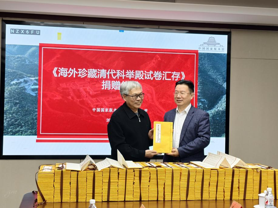 12月2日,我校向中国国家版本馆捐赠《海外珍藏清代科举殿试卷汇存》(以下简称《汇存》)。《汇存》由我校教授方宝川主编,是国家社科基金重大项目的阶段性成果。