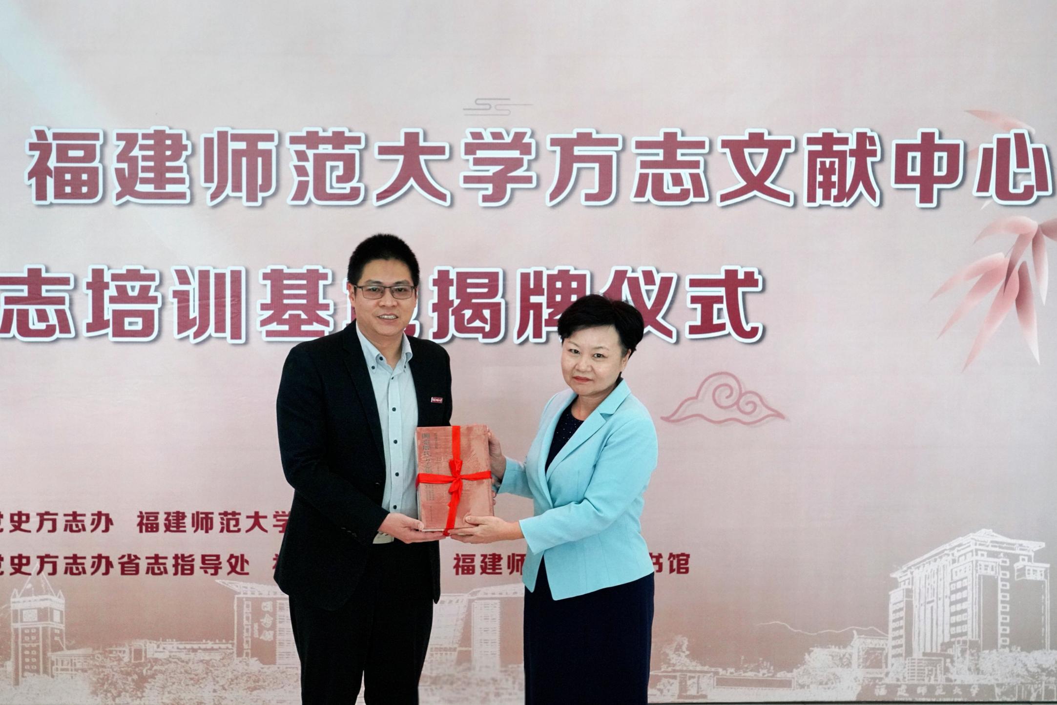 刘大可在致辞中介绍了方志的发展演变,充分肯定我校在参与志书的编纂、审稿、论证等方面取得的成效。他指出,省委党史方志办和福建师大合作由来已久,此次双方合作成立“方志文献中心暨地方志培训基地”,是优势互补、互利共赢的一次有益尝试和融合实践。希望双方继续发挥资源优势、学术优势和人才优势,整合相关学科团队的研究力量,加强方志业务人员专业培训、方志人才队伍建设、方志书籍编纂、相关课题申报和研究、方志文献资料整理等工作,共同推动八闽优秀传统文化研究,推出更多记录新时代、讴歌新时代、服务新时代的优秀成果。