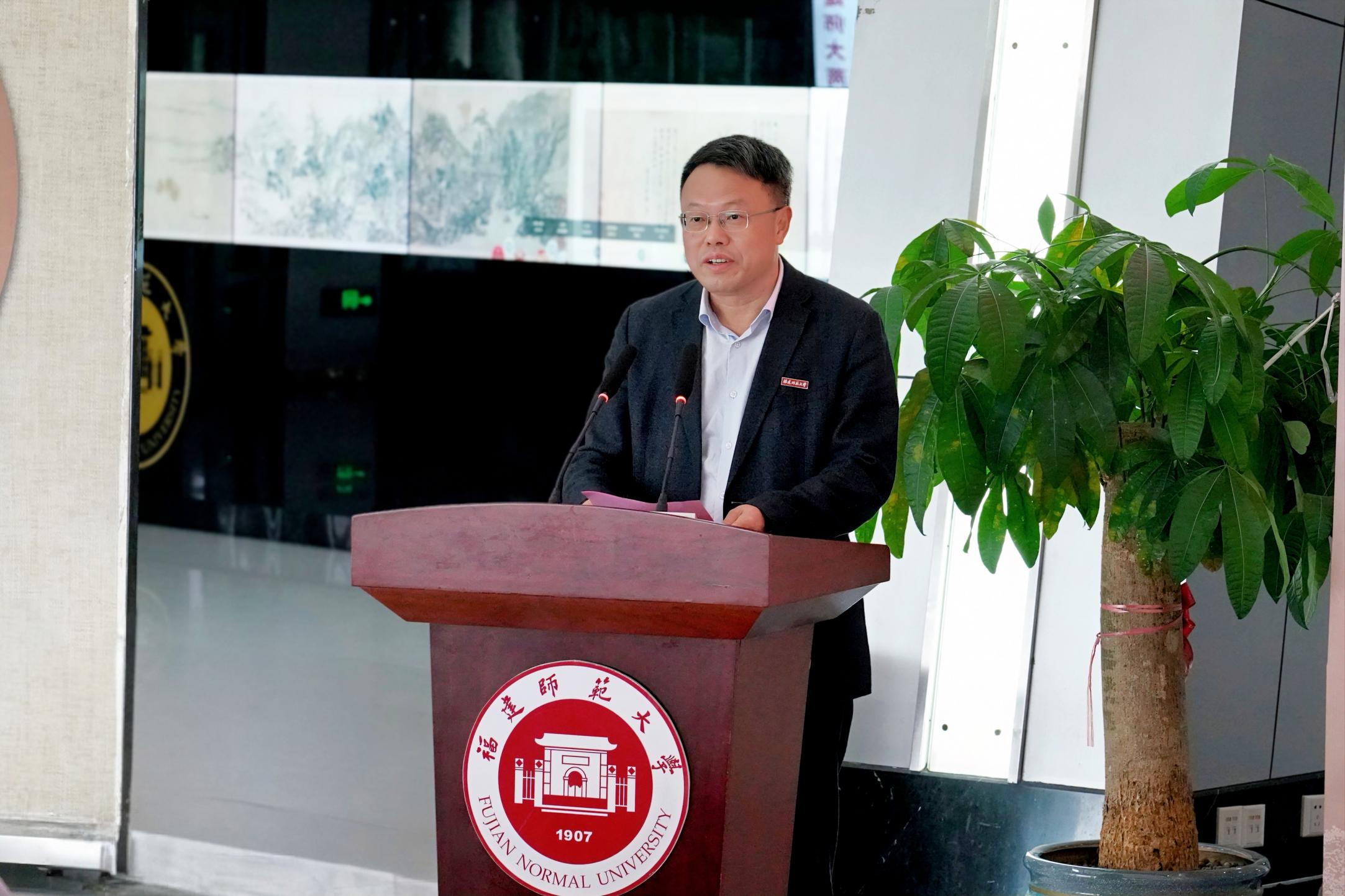 潘玉腾代表学校对各位领导、来宾的莅临表示热烈欢迎,并简要介绍了我校在方志文化研究和人才培养所取得的成效。他指出,方志是中国传统文化的瑰宝,蕴含着巨大的历史智慧,承担着存史、资政、育人的重要功能。福建是方志大省,有着历史悠久的方志文化,通过对方志文献的深入研究,可以更好地了解福建的历史变迁、文化特色和社会经济发展。他表示,学校将以此次基地揭牌为契机,与省委党史方志办开展深度合作,聚力促进方志理论研究、学科建设、人才培养、学术交流等工作,为推动八闽优秀传统文化创造性转化、创新性发展作出师大贡献。