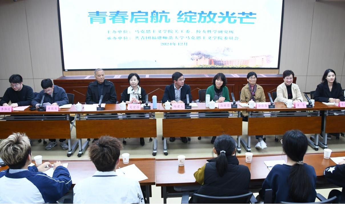 12月6日,由马克思主义学院关心下一代工作委员会、校女性学研究所主办的“青春启航,绽放光芒”2024级新生座谈会在学院学术报告厅举行。院关工委主任陈桂蓉教授,委员王岗峰教授、俞歌春教授,校女性学研究所所长吴宏洛教授,院党委副书记杨君火,副院长黄雯及2024级全体本科生参加。