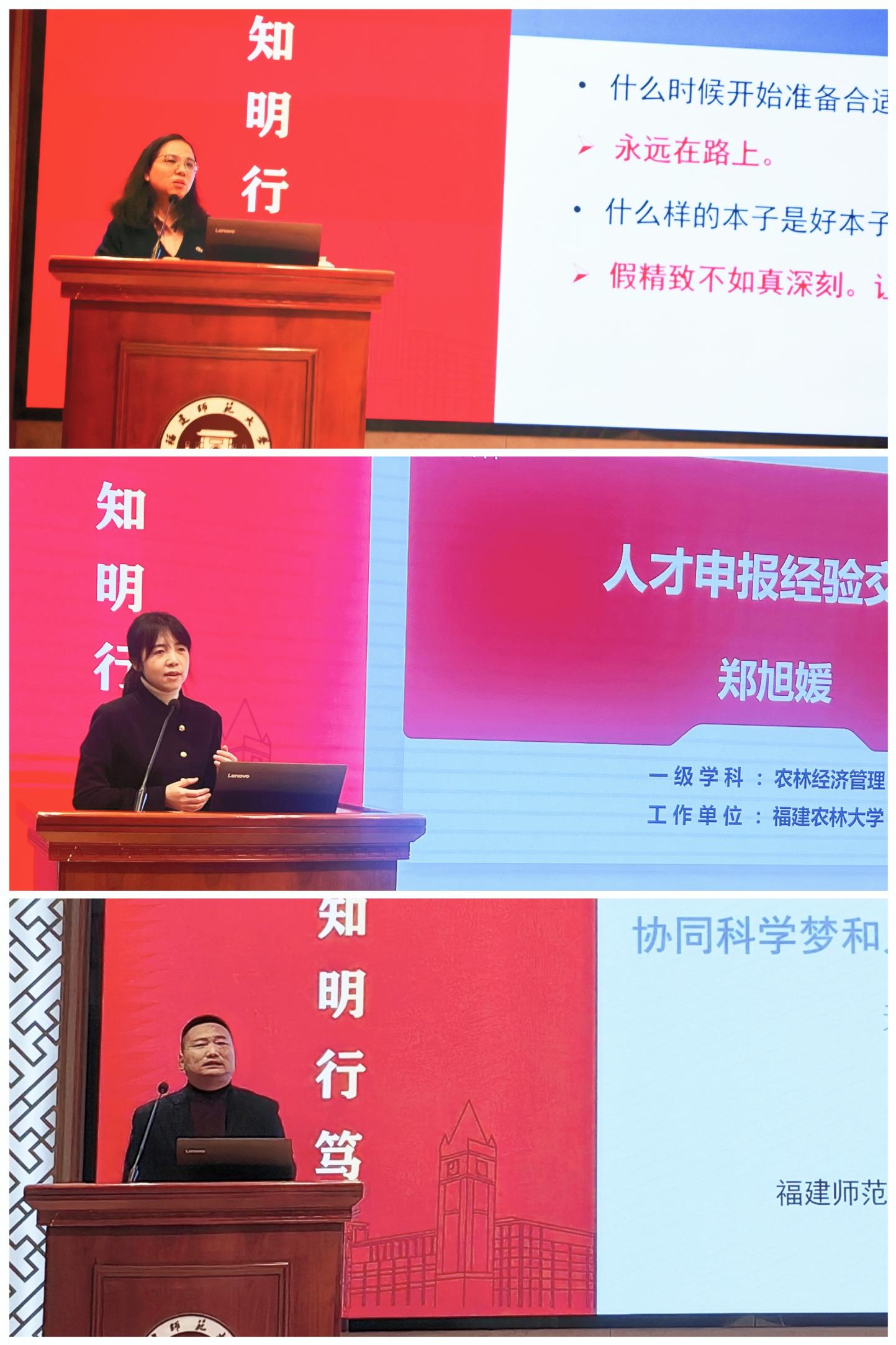 会议于12月9日在旗山校区宏达厅举行。校党委副书记涂荣,国家级人才代表我校化学与材料学院张章静教授、地理科学学院王维奇研究员,福建农林大学经济与管理学院郑旭媛教授,以及40余位意向申报国家级人才项目的教师参加了会议。