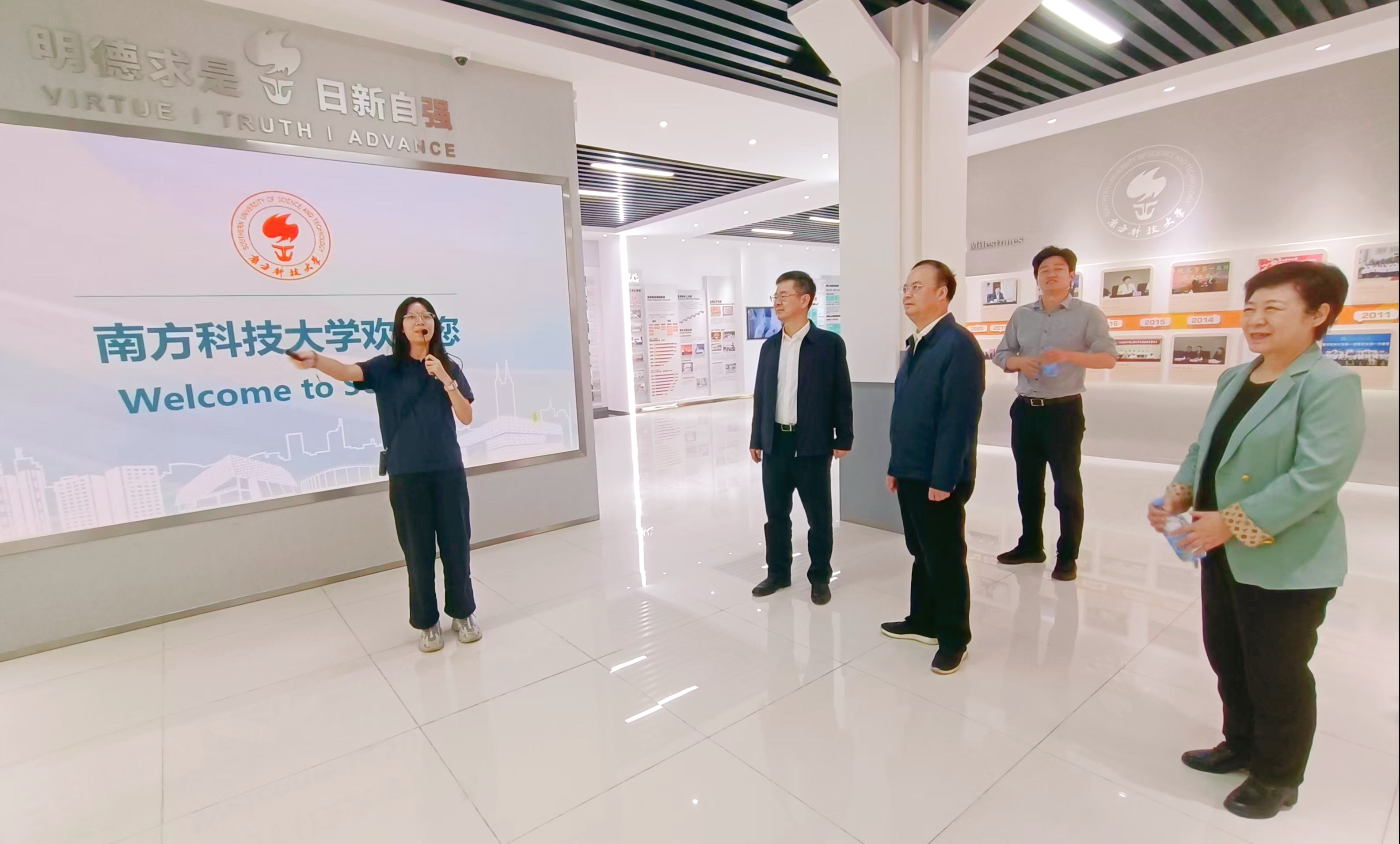 在南方科技大学党委副书记、纪委书记姚文胜陪同下,林月恩一行参访了南方科技大学办学成果展厅、廉诚文化主题学生艺术实践课程书画展、廉洁研究院、机器人研究院、冷冻电镜中心等教学科研文化场所,双方围绕纪检监察工作、新时代廉洁文化建设、纪检监察学科建设等主题进行了深入交流。林月恩代表学校对南方科技大学长期以来对我校事业发展和纪检监察学科建设的支持帮助表示感谢,介绍了我校纪检监察工作和纪检监察学科建设情况,希望两校在纪检监察工作、廉洁文化建设、纪检监察学人才培养和咨政服务等方面加强合作,推动资源共享、优势互补,携手推进纪检监察学科建设、理论研究和实践探索。姚文胜对林月恩一行表示热烈欢迎,对我校率先启动纪检监察学科建设予以高度赞赏,介绍南方科技大学纪检监察工作、廉洁研究院建设、以“三百工程”助推新时代高校廉洁文化走深走实等工作情况,表示将进一步加强与我校的交流合作,共同推动新时代纪检监察学科高质量发展。
