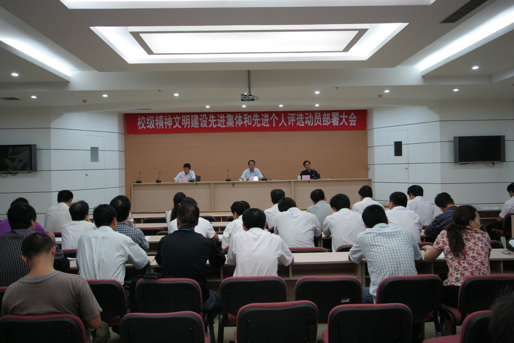 他要求,全校各级党组织和全体师生员工要认真学习全国教育工作会议精神,把加强精神文明建设对学校事业发展重大意义的认识引向深入。要以评选活动为契机,认真对照指标体系,立足实际,总结经验,查找差距,把各项指标转化为促进工作发展的要求,转化为推动学校科学发展的动力。要加强理论研究,准确把握新形势下高校精神文明建设的新特点、新规律;突出物态文化建设,优化育人环境;强化精神文化建设,提升师生道德水平;完善工作体制机制,建立一套行之有效的创建机制,扎实推进文明校园建设,为迎接第十一届省级文明学校评估和申报全国精神文明建设先进单位奠定坚实基础。