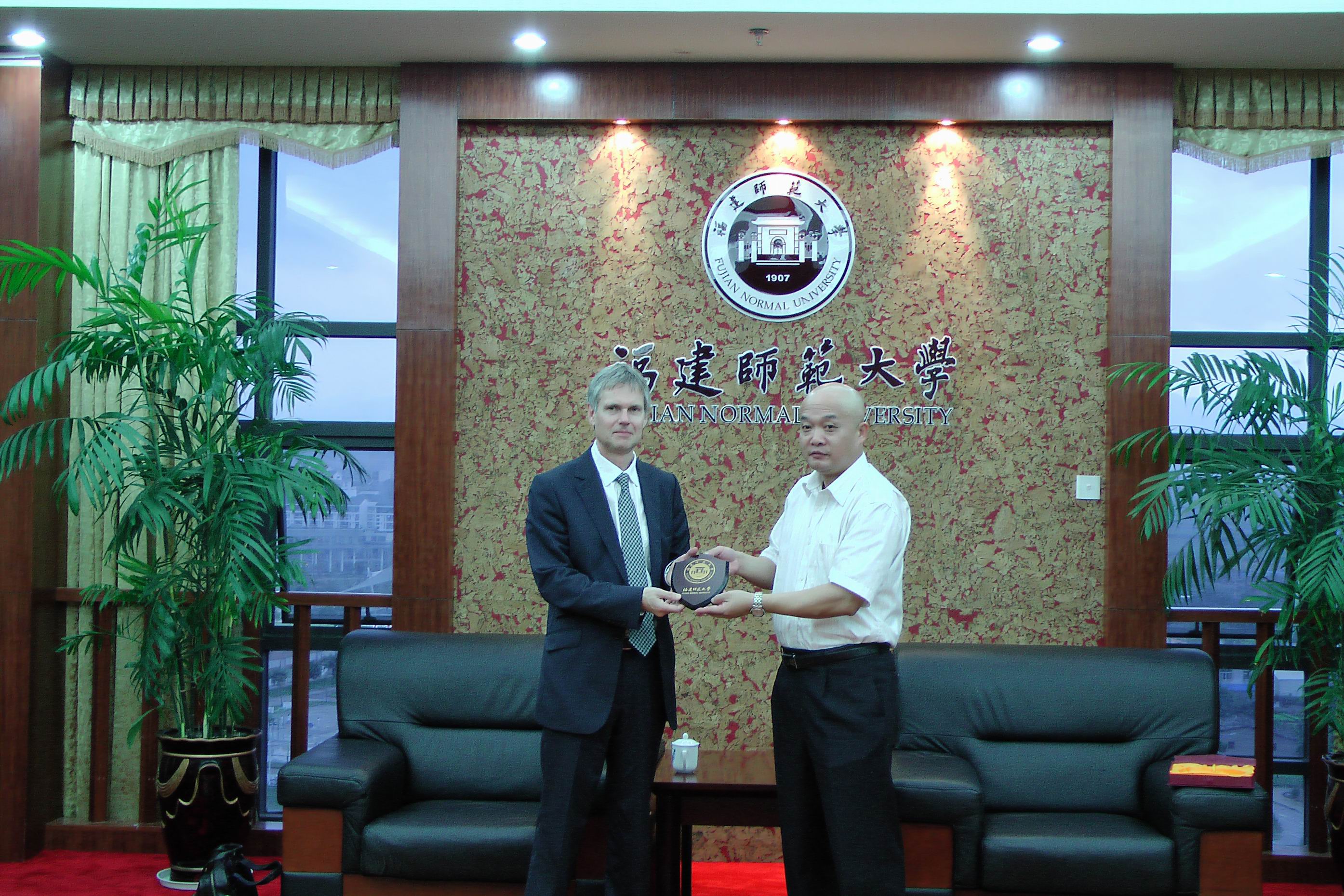 10月22日,英国阿伯斯特威斯大学副校长阿莱德·琼斯教授(Prof. Aled Jones)在该校计算机科学系主任申强教授(Prof. Qiang Shen)的陪同下来我校参观访问。 许明副校长热情会见了客人,双方就开展合作办学事宜进行了沟通和交流。国际合作与交流处、软件学院党政负责人参加了会见。见面会后,阿莱德·琼斯教授一行参观了软件实验大楼,并与软件学院师生代表亲切座谈。 (软件学院 施志源)