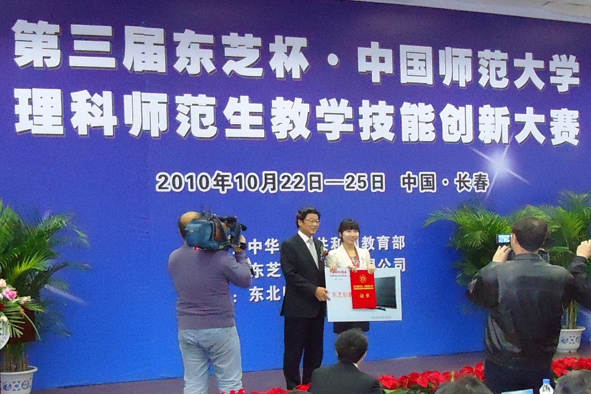 本赛事是教育部举办的高水平的理科师范生教学技能创新实践比赛,分数学、物理、化学三个学科。其目的是促进中日友好和支持中国教育事业,培养造就一批“师德高尚、理念先进、业务精湛、锐意创新”的优秀理科教师后备力量,为中国师范教育发展和自主创新能力的提高作贡献。前两届仅在6所全国部属重点师范大学及6所省属重点师范大学中举行,今年第一次面向全国40所师范大学学生举办,每学科派出一名学生参加决赛,内容包括即席讲演、教案评比、模拟授课、现场问答四个部分,由教育部和各院校专家组成评委会进行专业评选。我校首次参赛即取得了优异的成绩,得到大赛组委会的高度评价。王素云同学还作为唯一参赛选手,发表获奖感言。