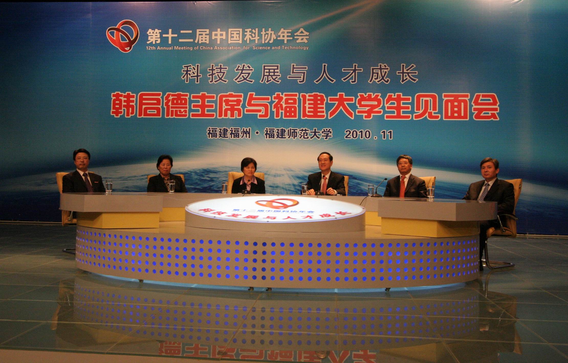 大会在青年学生热情的歌声中拉开帷幕。韩启德主席发表了真诚朴实的讲话。他说,很高兴在中国科协年会期间与福建的大学生见面交流,每次与大学生沟通,都有新体会,收获都很大。