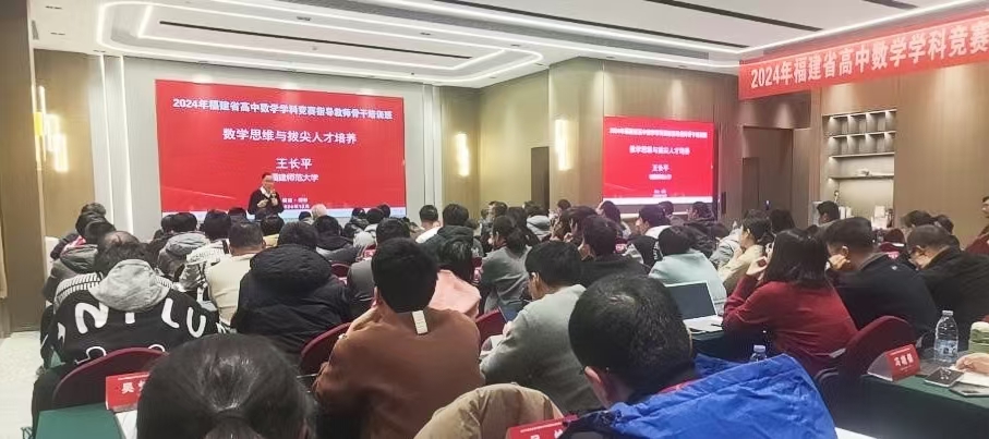 培训班于12月18日至20日在福州举行,由省教育厅、省科学技术协会联合主办,省数学学会与我校共同承办。经全省各设区市遴选的80位高中数学竞赛指导教师参加了本次培训。校长王长平,全国各地知名竞赛教练员应邀作专题讲座。