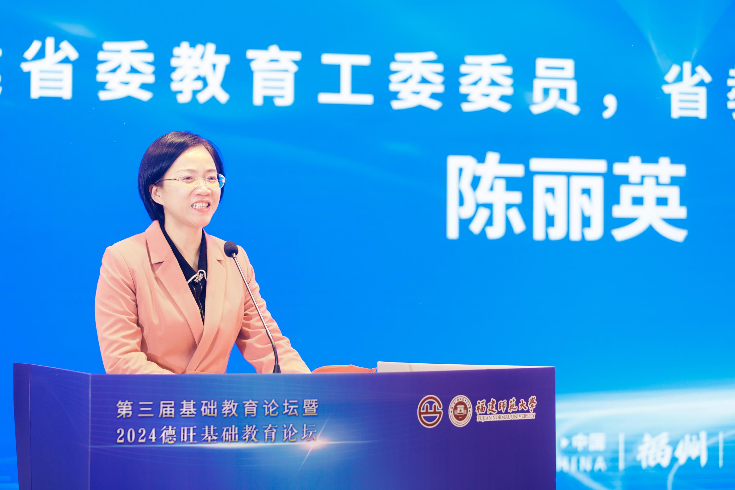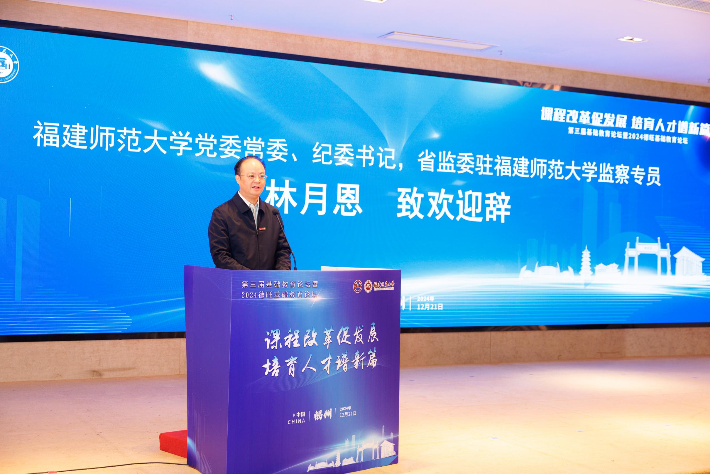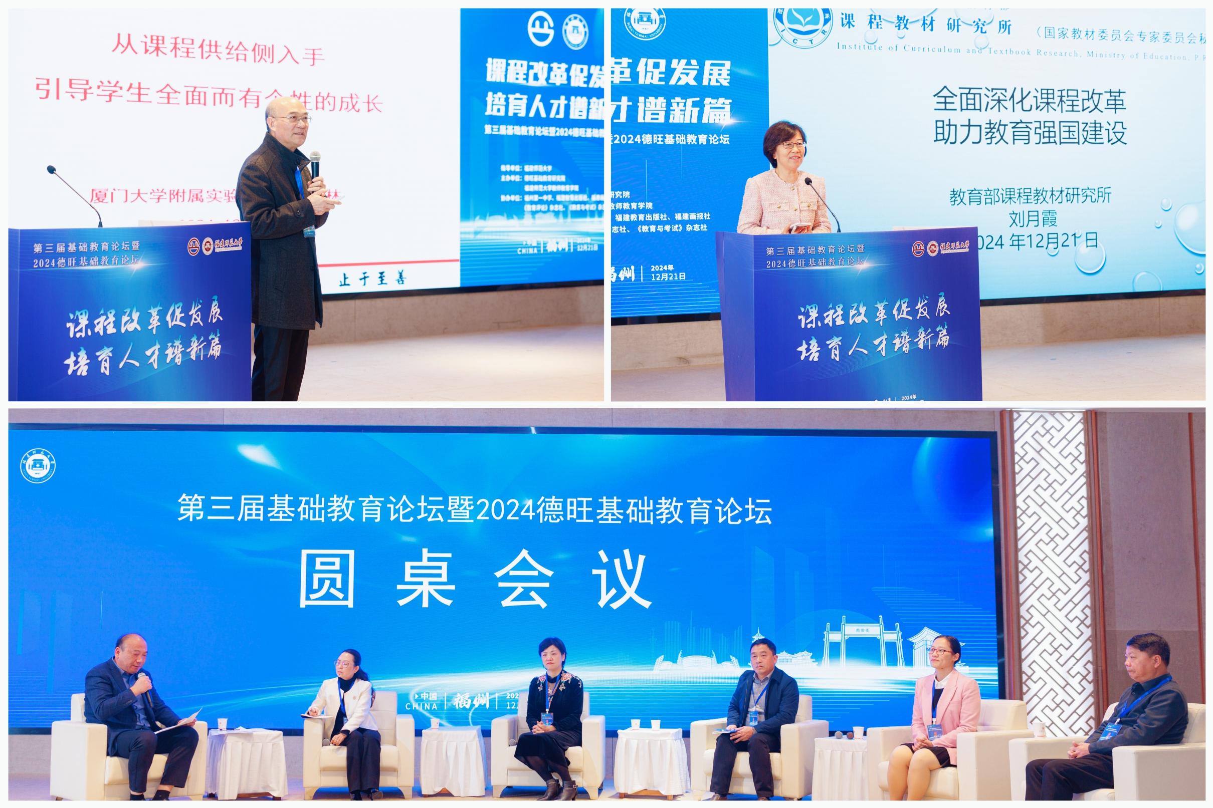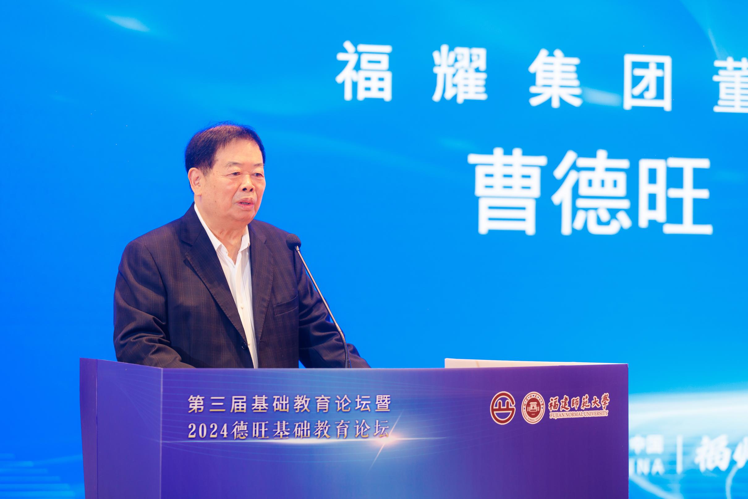 论坛于12月21日在福州举行,由我校指导,德旺基础教育研究院、我校教师教育学院主办。教育部课程教材研究所副所长刘月霞,福建省委教育工委委员、省教育厅党组成员、副厅长陈丽英,福耀集团董事局主席曹德旺,福建教育学院党委书记郭春芳,我校党委常委、纪委书记、省监委驻福建师大监察专员林月恩,福建幼儿师范高等专科学校校长林伟川,教育部中学校长培训中心研究室主任王俭,民盟福建省委政策研究室二级调研员鄢晨枫等出席开幕式。开幕式由省教育厅原副厅长、一级巡视员、德旺基础教育研究院院长李迅主持。