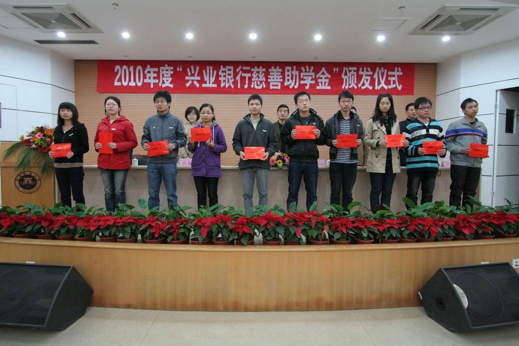 “兴业银行慈善助学金”是兴业银行通过省慈善总会捐资1000万元设立的,从2007年开始,分五年定向捐赠给包括我校在内的我省5所高校,每年每校40万元,资助100名家庭经济特别困难的同学。