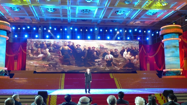 联欢会特设长达30分钟的福建板块,作为整台晚会的压轴节目,向全国观众推介福建文化。该板块以我校大型油画作品《闽水万古流》为背景拉开序幕。这幅被媒体称为“福建史上最大的独幅油画”作品,由我校美术学院李豫闽、迟连城、林颢和王裕亮等四位教师联合创作完成。作品以王审知、朱熹、郑成功、林则徐、严复、林语堂、陈嘉庚、冰心和陈景润等50位福建先贤为表现对象,展示了福建丰厚的文化底蕴和深远的历史传承,填补了福建美术创作中在一件作品里表现众多历史名人的创作空白,在福建美术创作史上具有突破意义,2010年8月在北京中国美术馆展出期间,深受中央领导和社会各界的好评。