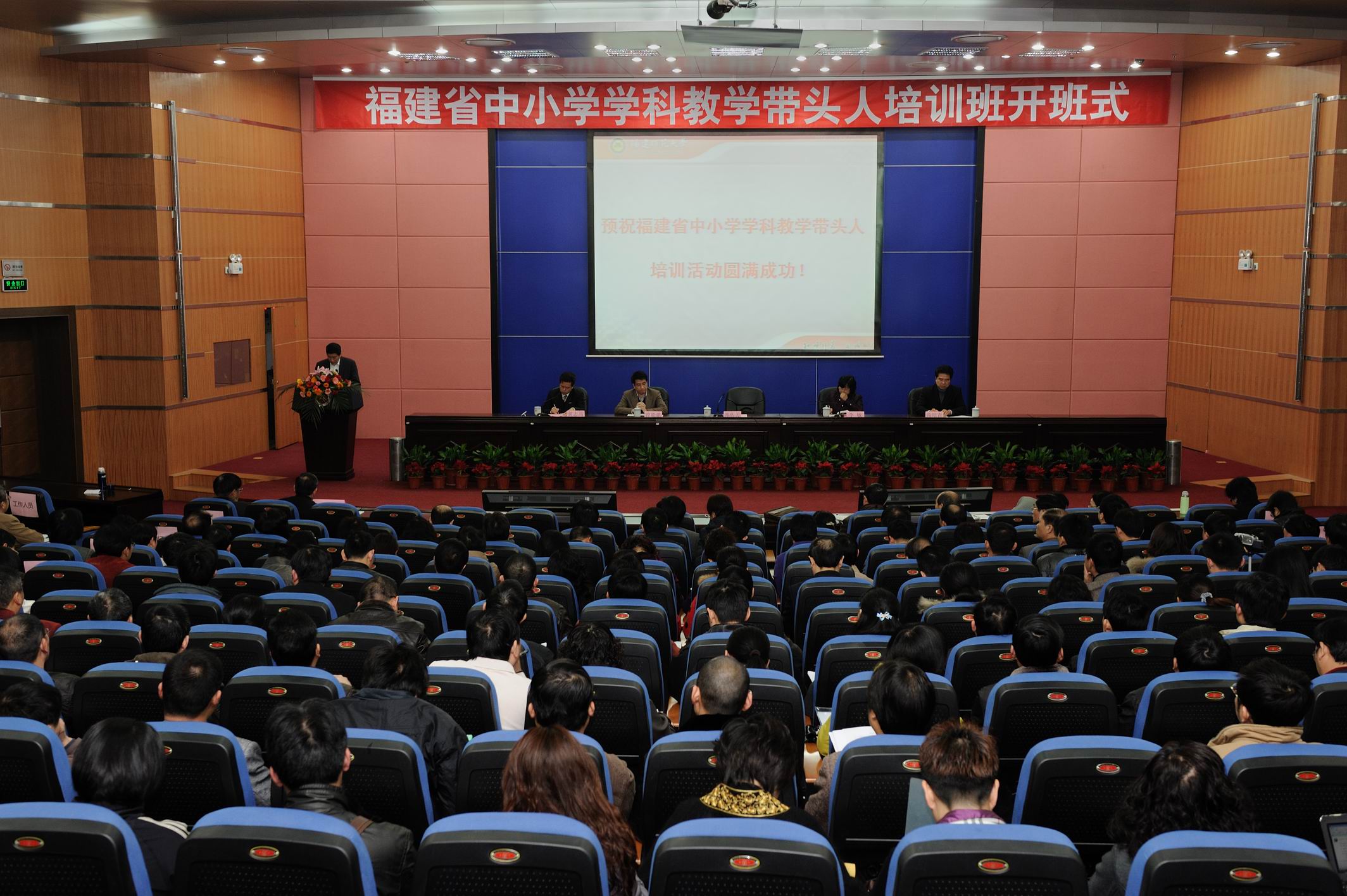 开班式上,李敏首先致辞,对与会领导和来自八闽各地的学员表示热烈欢迎。她指出,福建省中小学学科教学带头人培训班的组织开展是我省贯彻落实国家教育规划纲要、深化星空官网app下载入口改革的重要举措,对于提高我省中小学教师队伍水平,深化基础教育课程改革,促进我省基础教育发展将发挥重要作用。她表示,我校在此次培训中承担了中学语文、英语、数学、政治、物理、化学、历史、地理、音乐、美术、体育和小学语文、小学数学、小学体育、幼儿教育等共计15个学科424人为期两年的培养任务。在培训时间里,学校将充分利用各类优质资源,为学科教学带头人搭建培训、教研、交流平台。李敏还就进一步做好培训班的各项工作提出两点意见:一是希望各学科基地高度重视,精心设计培训方案,认真完成培训任务;二是希望各学科基地加强管理,不断总结,相互交流,进一步提高教学质量。