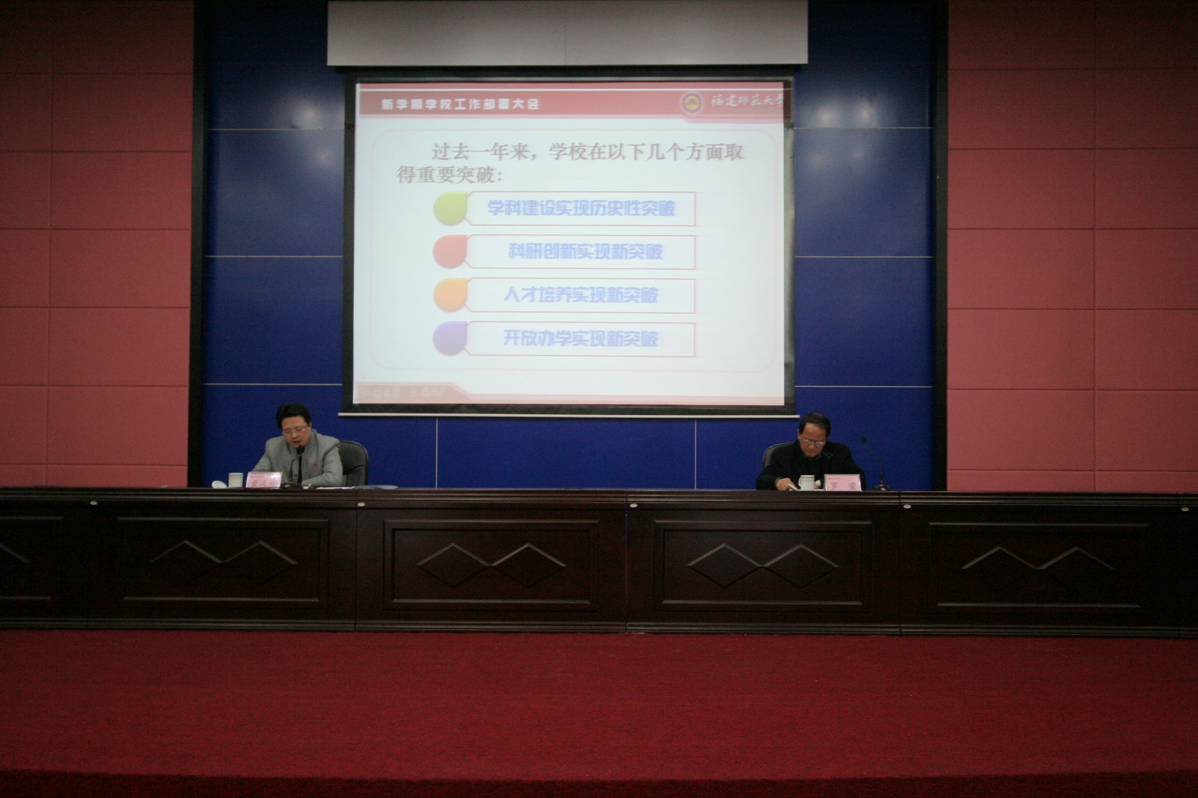 会上,黄汉升校长总结通报了学校过去一年的工作情况,代表校党委、校行政对新学期工作作了全面部署。他指出,2010年是我校深化内涵建设、各项事业取得重大进展的一年,是我校发展历程中充满挑战和考验的一年;是高水平建设项目亮点频现的一年;是有效推进学科建设快速发展的一年。学校在学科建设、星空体育网站赞助莱切、人才培养等高等教育核心指标上取得了一系列历史性突破。他强调,在为成绩感到骄傲和自豪的同时,要总结经验、面向未来,要继续保持和发扬求实的工作作风和求真的工作态度,把今后的工作做得更好,取得更大的成绩。