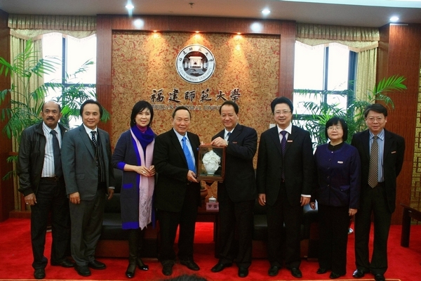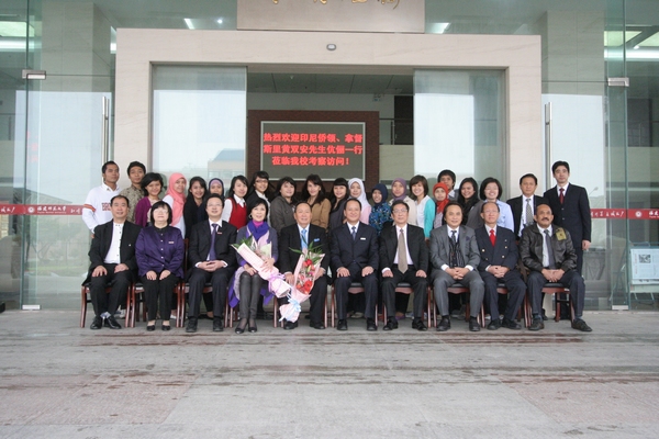 4月8日,印尼著名侨领黄双安拿督斯里伉俪一行9人访问我校。校领导罗萤、黄汉升、李敏会见到访客人,学校办公室、海外教育学院相关负责人参加了会见。