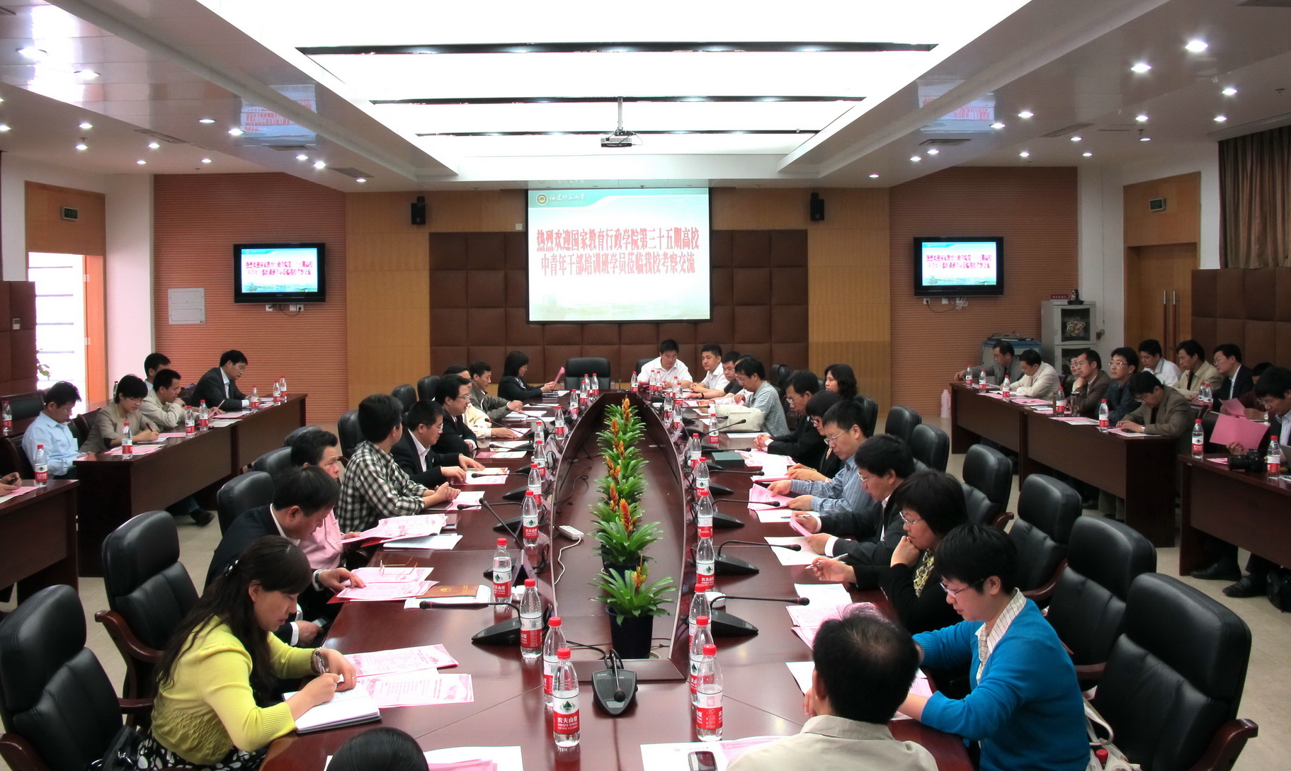 会上,黄汉升校长从历史沿革、学科建设、师资队伍、教学科研、对外交流等方面详细介绍了我校的基本情况和近年来的发展概况,并就如何积极适应形势发展需要,不断推进办学理念、办学模式的改革与创新等问题畅谈了对高师院校办学定位和特色建设的认识。考察团领队、国家教育行政学院史朝教授对我校的办学历史、学科建设、师资力量和育人成效给予了高度评价。他代表考察团对我校的热情接待表示感谢,并赠送了纪念品。