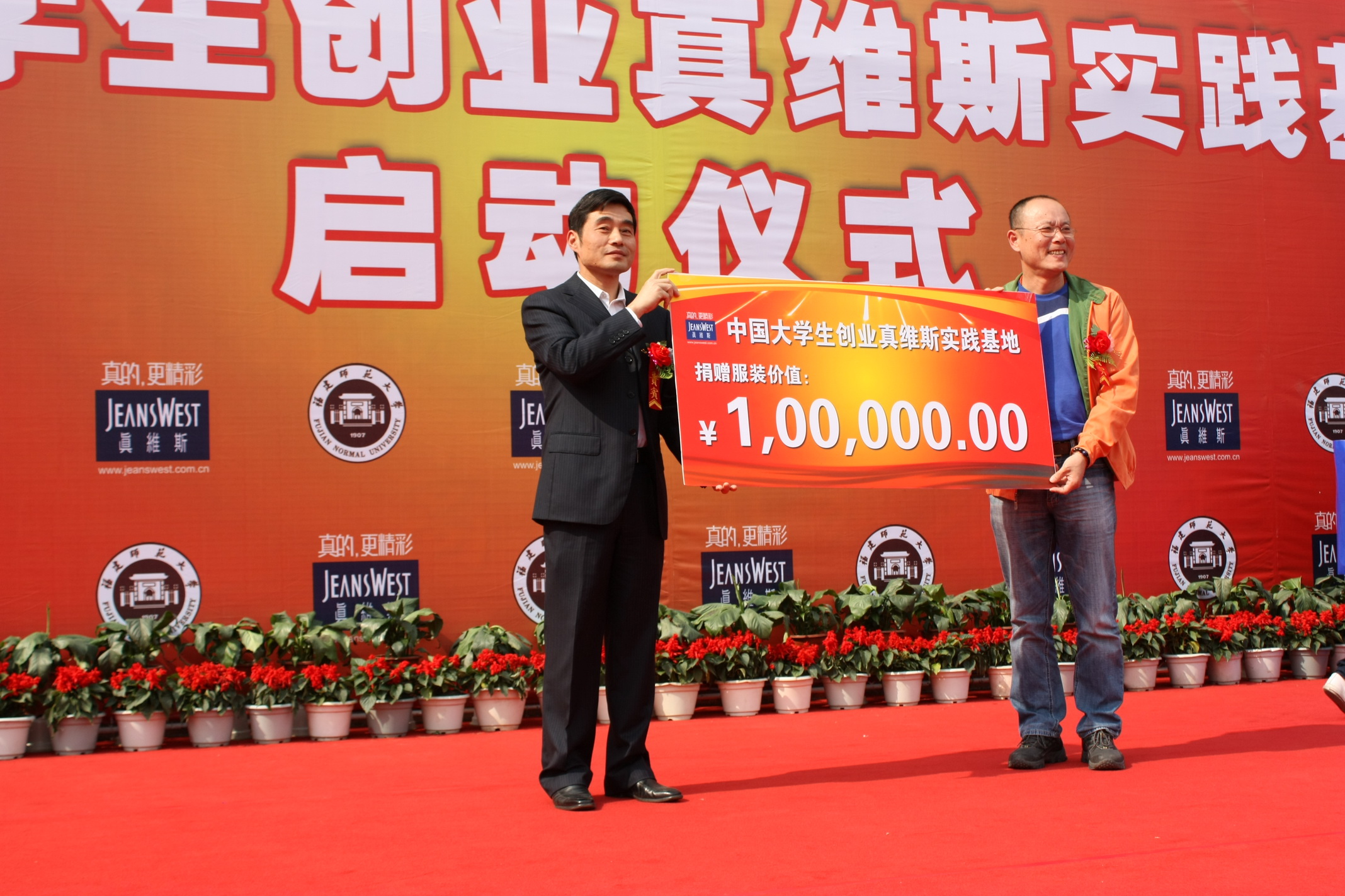 冯庆崧代表真维斯公司向我校家庭经济困难学生赠送2700件服饰,向我校中国大学生创业真维斯实践基地颁发创业金钥匙,希望越来越多的学校加入到“中国大学生创业真维斯实践基地”这一项目中来﹐在更大的范围普及大学生创业就业新模式。受助学生、中国大学生创业真维斯实践基地学生代表、经济学院2009级吴小锋同学表示,今后会更加努力用实际行动树立当代大学生的新形象,为贫困大学生的自立自强增添新的注脚,让爱心从这里起飞,用真心和诚心关爱他人,用知识和技能造福社会。