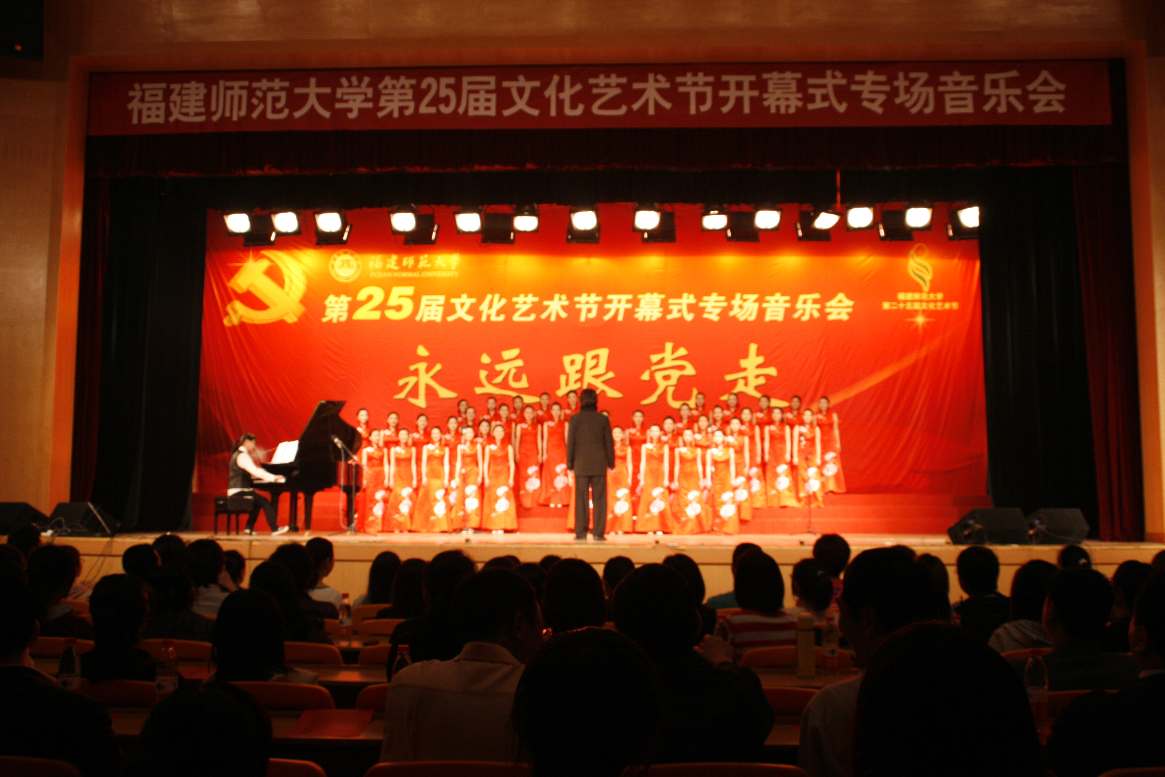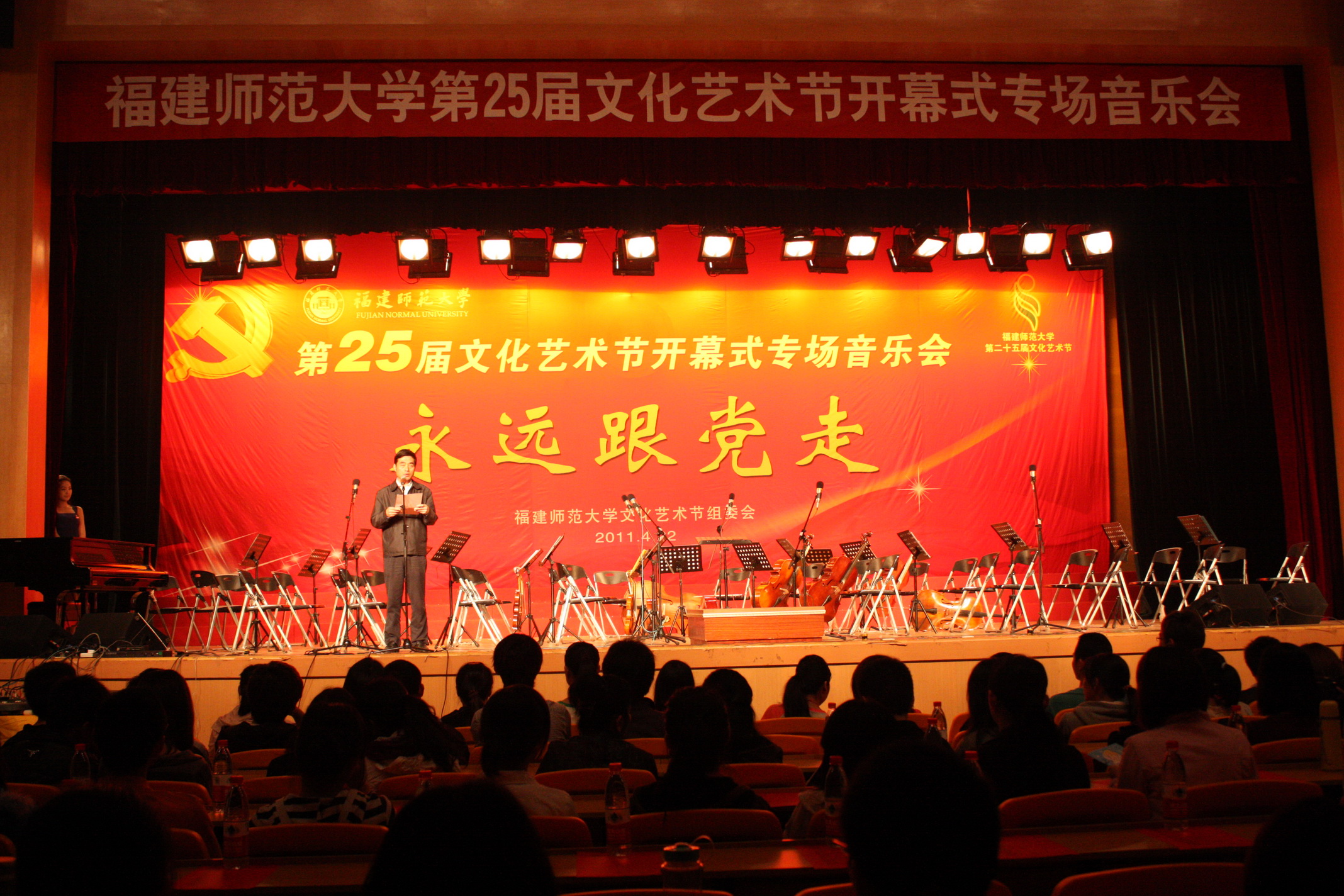 游小波致开幕辞。他指出,我校文化艺术节已成功举办了25届,走出了一条具有我校特色的先进文化育人之路。本届文化艺术节以“永远跟党走”为主题,注重时代性、思想性与艺术性的统一,活动内容丰富多彩,充分体现了我校校园文化的时代特征、校园特色和师生特点,充分表达了广大师生对党和祖国的深厚感情,大力唱响共产党好、社会主义好、改革开放好、伟大祖国好、各族人民好、福建发展好的时代主旋律。