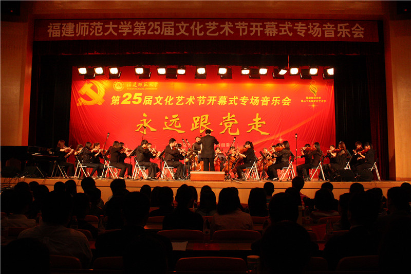 4月22日晚,我校第25届文化艺术节开幕式专场音乐会在旗山校区青春剧场举行。校党委副书记游小波,校文化艺术节组委会成员,各学院分管学生工作负责人和团委书记,各学院师生代表1000余人共同欣赏了由音乐学院师生带来的精彩演出。