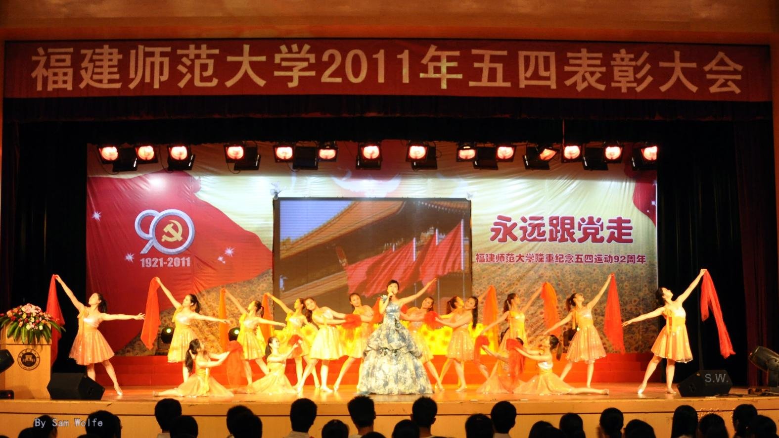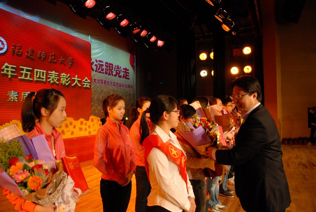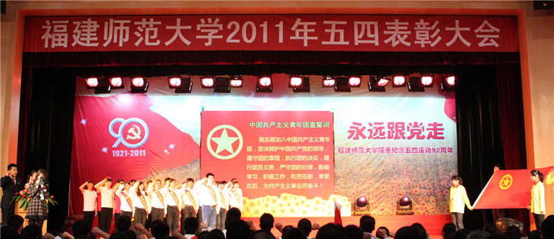 5月4日下午,我校以“永远跟党走,青春促发展”为主题的2011年五四表彰大会在旗山校区青春剧场举行。团省委副书记兰明尚,校领导罗萤、黄汉升、游小波、李敏,校关工委主任陈锋,团省委学校部部长苏畅,海西先进青年典型代表,以及学校有关部处负责人、各学院分管学生工作负责人、团委书记和受表彰学生代表1000多人参加了大会。